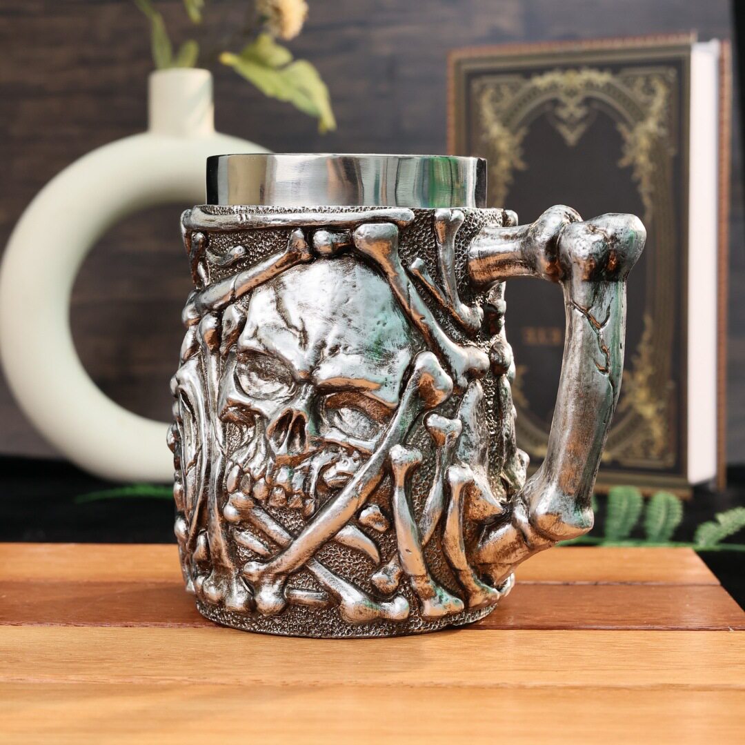 欧美酒吧艺术啤酒杯朋克骷髅马克咖啡杯大容量高颜值特色树脂水杯