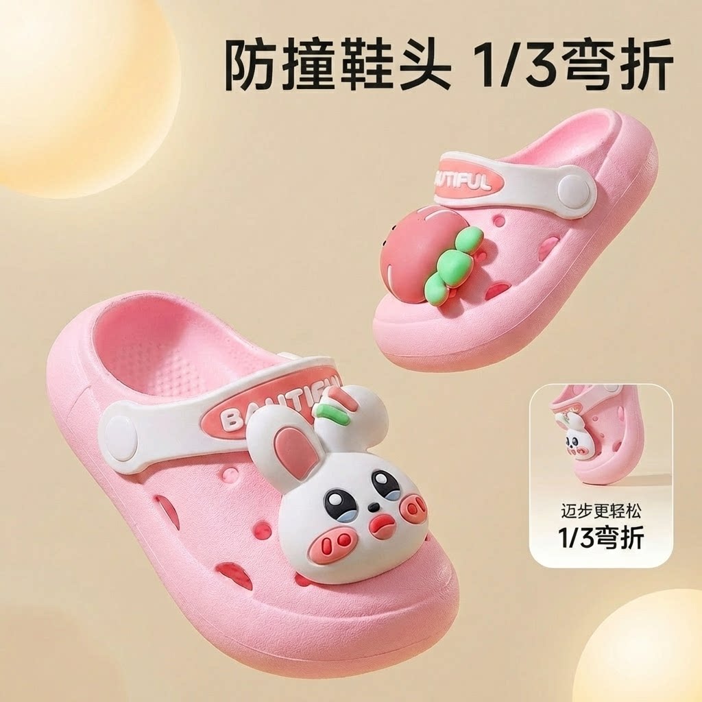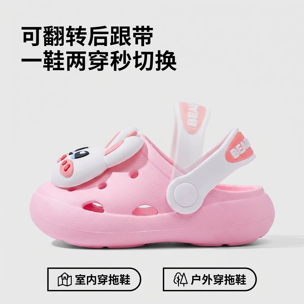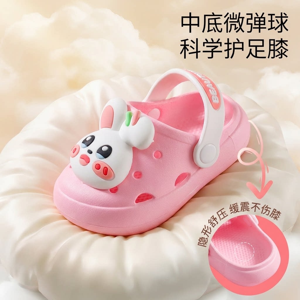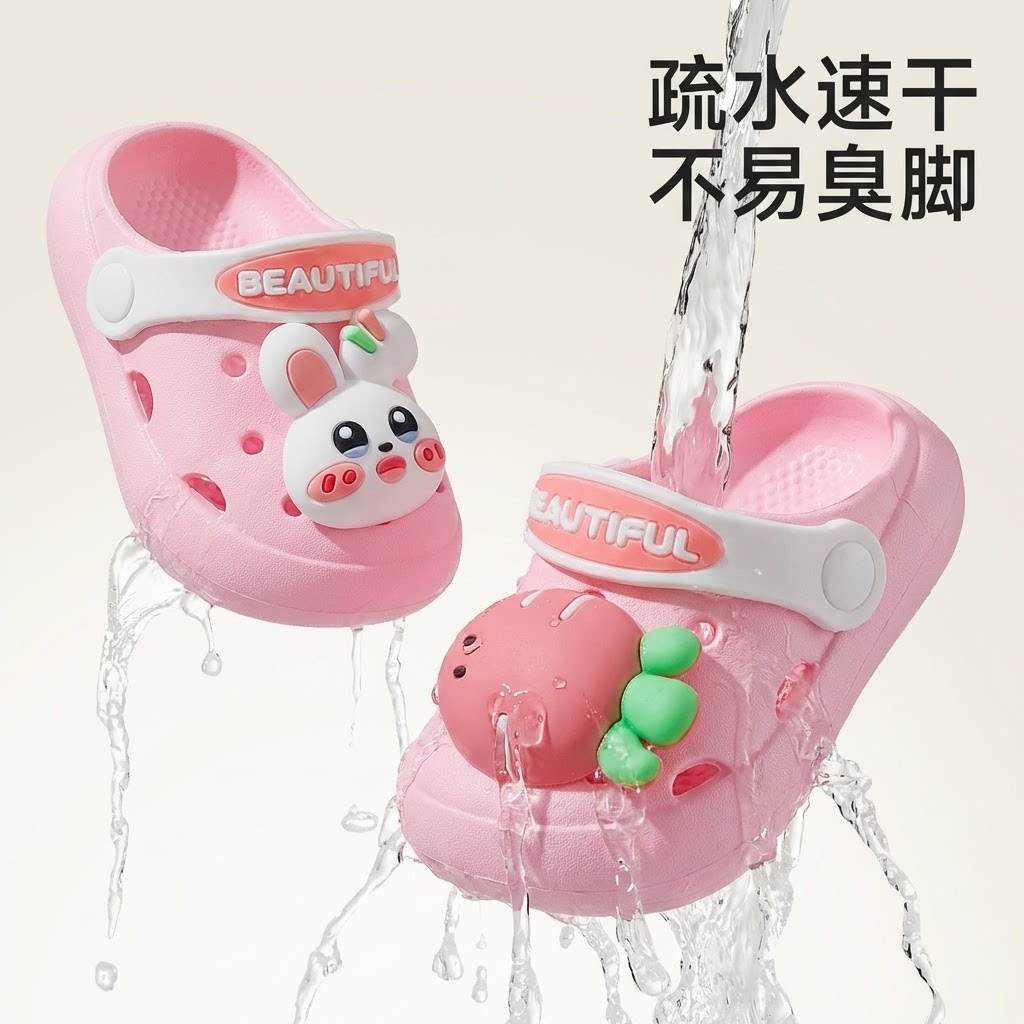 婧麒儿童洞洞鞋女童夏季2025新款宝宝软底防滑居家男童洗澡凉拖鞋