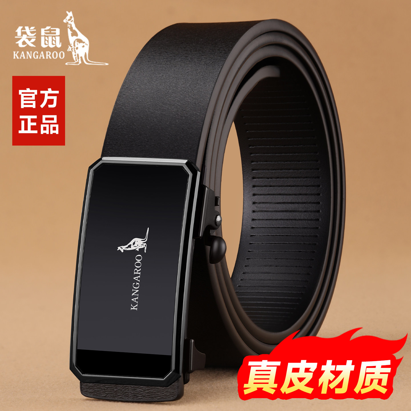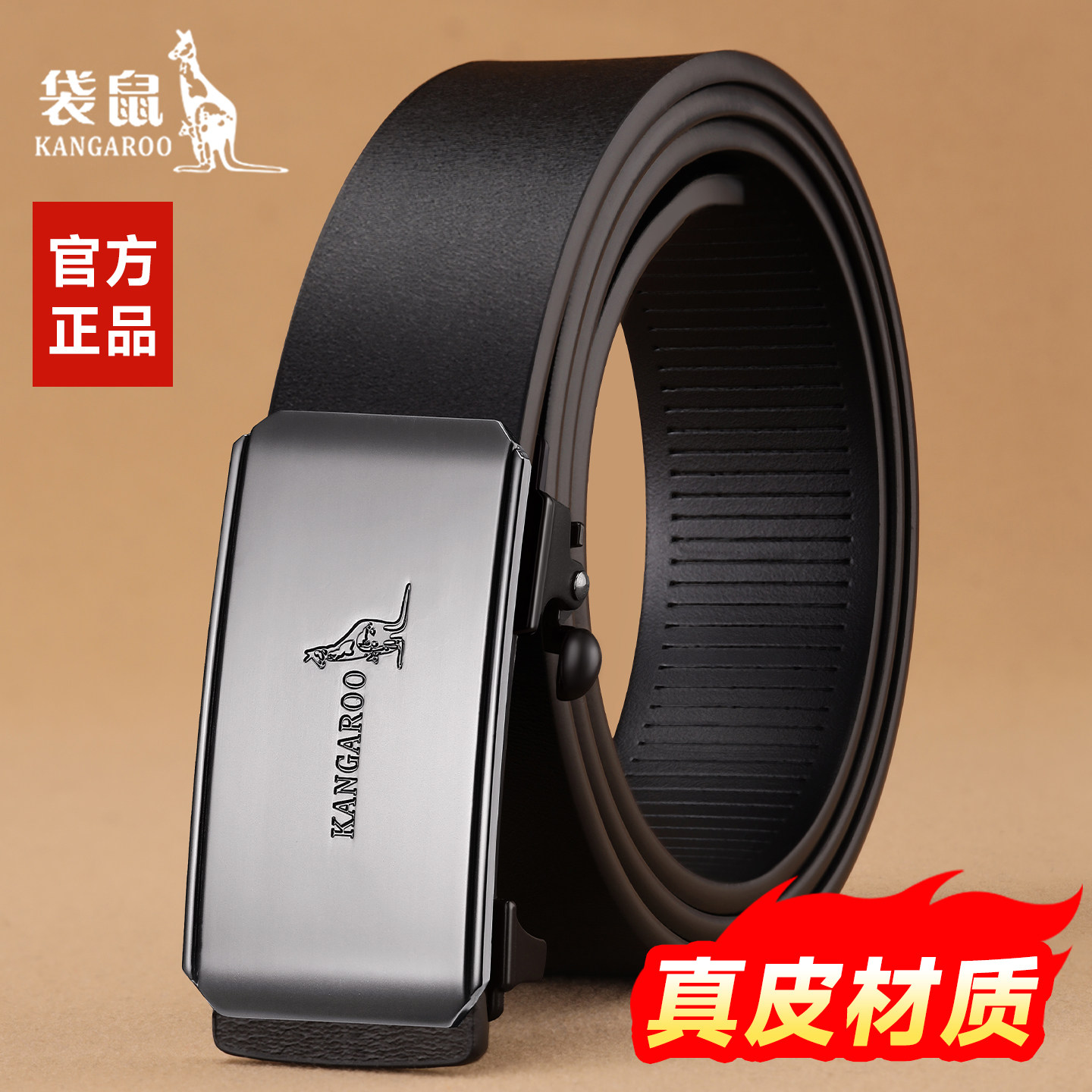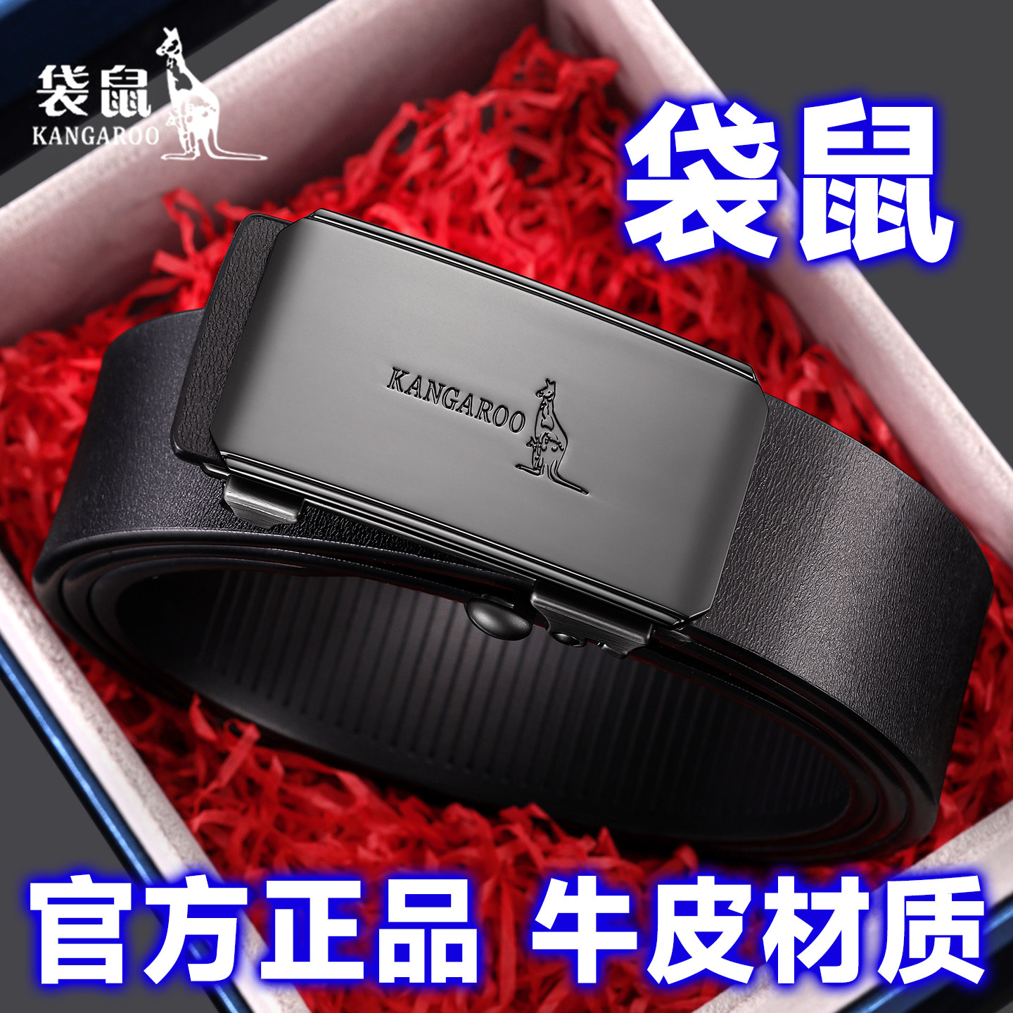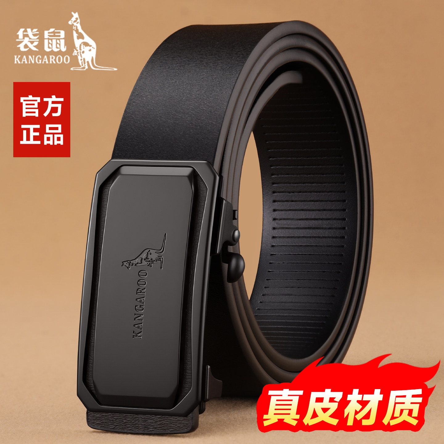 袋鼠男士皮带真皮无牙内穿自动扣腰带男2025新款整张牛皮商务裤带