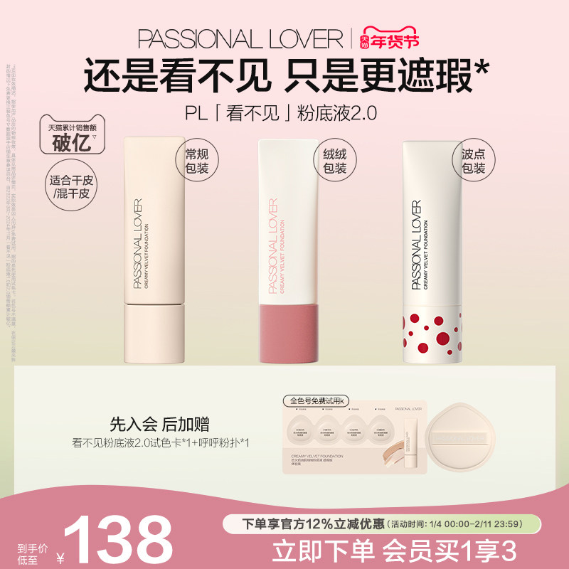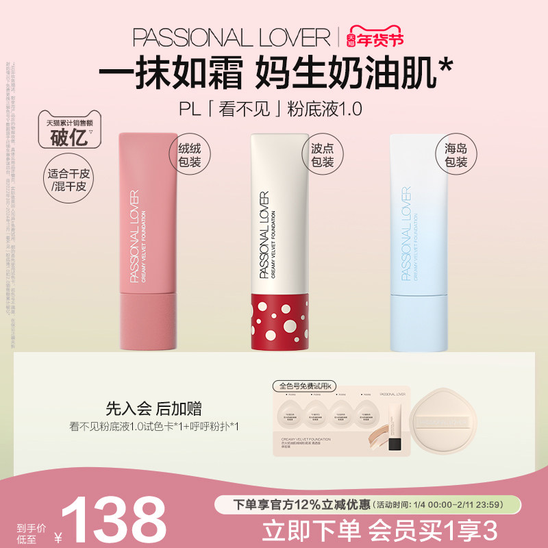 【新年礼物】PL看不见粉底液1.0 2.0保湿滋润干皮奶油肌遮瑕持妆