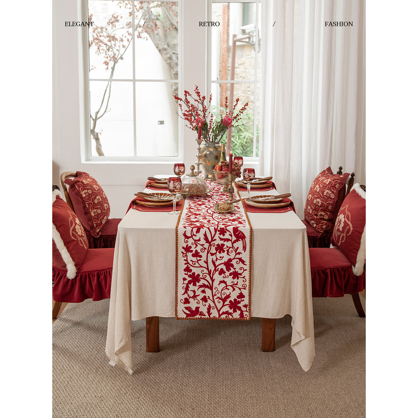 【国补再减15%】蜡笔派美意延年桌旗红色节日桌布新婚长条盖布