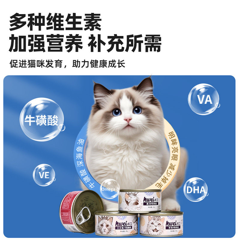 库卫猫罐头猫咪零食成幼猫湿粮主食营养增肥补水猫条24罐整箱鸡肉