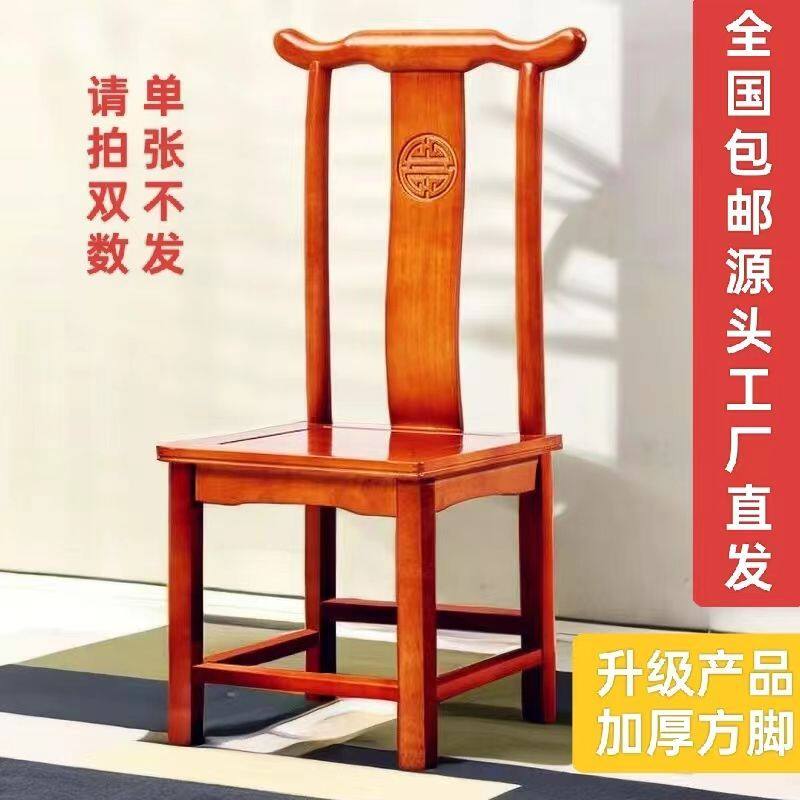 2025新新中式实木椅子餐椅酒店餐厅餐饮店商用官帽椅实木方脚牛角