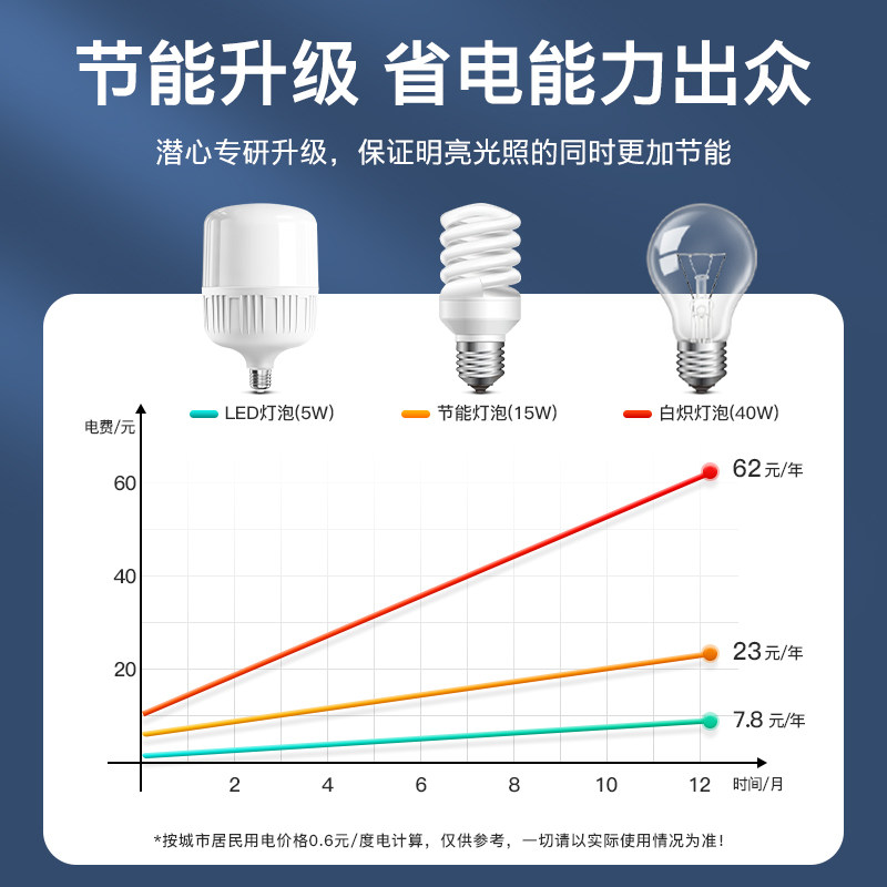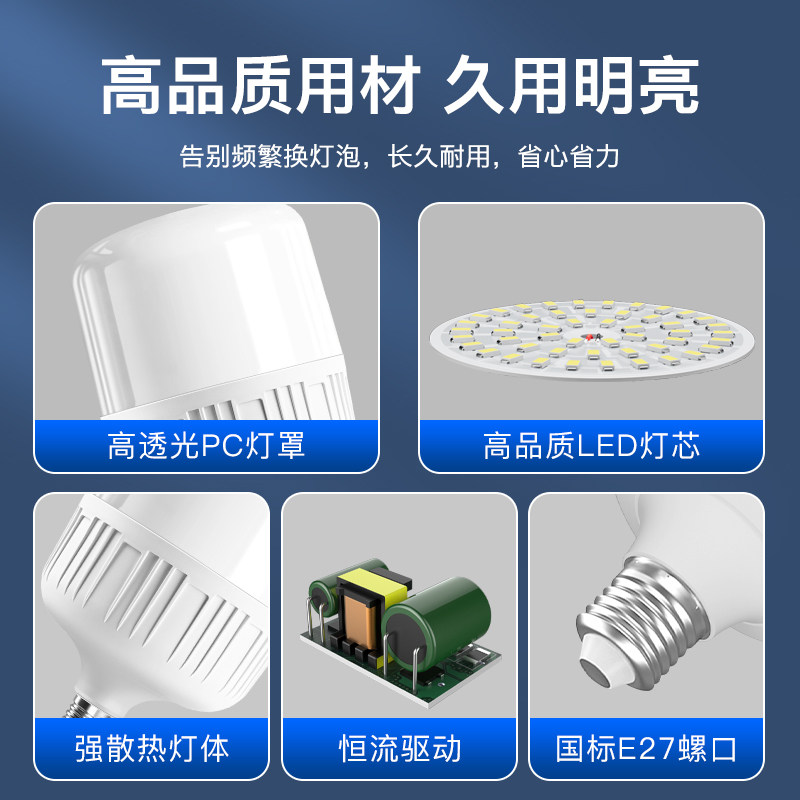 LED灯泡超亮家用室内护眼无频闪节能E27螺口白光大功率照明球泡灯