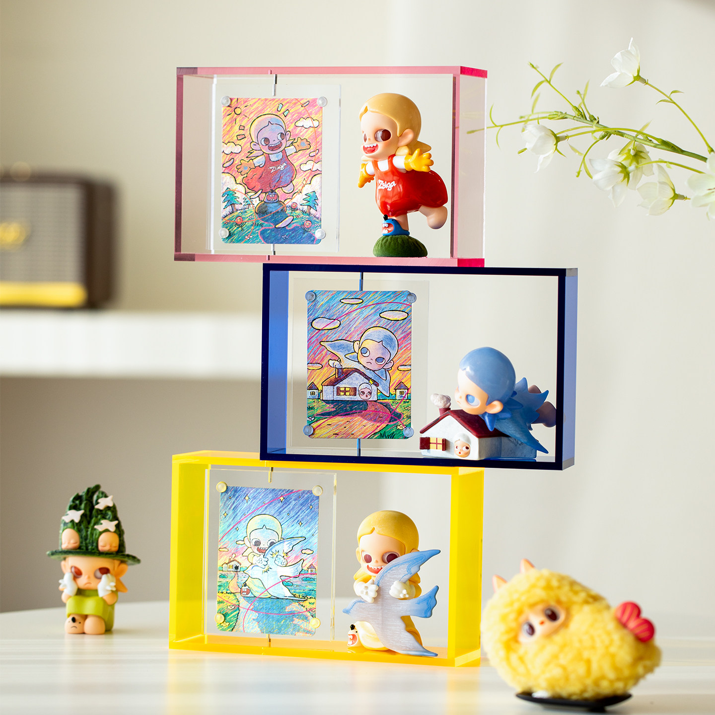 zsiga盲盒收纳相框手办装饰磁吸亚克力中空旋转身份小卡展示架子