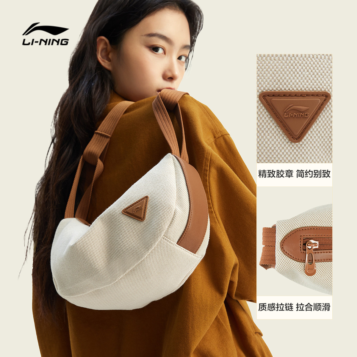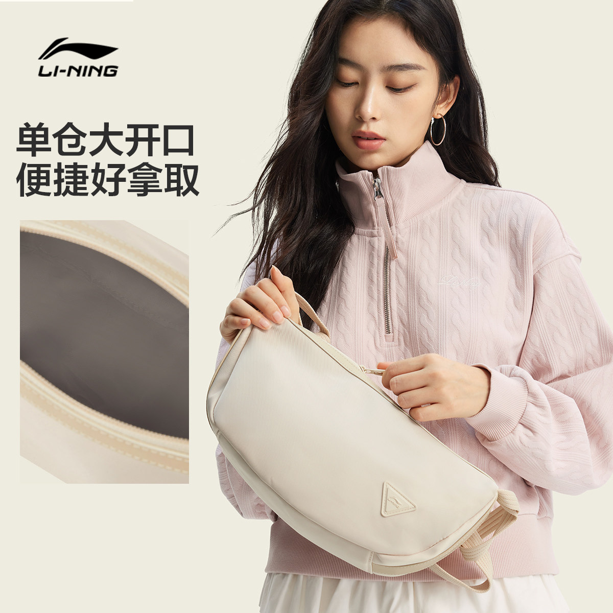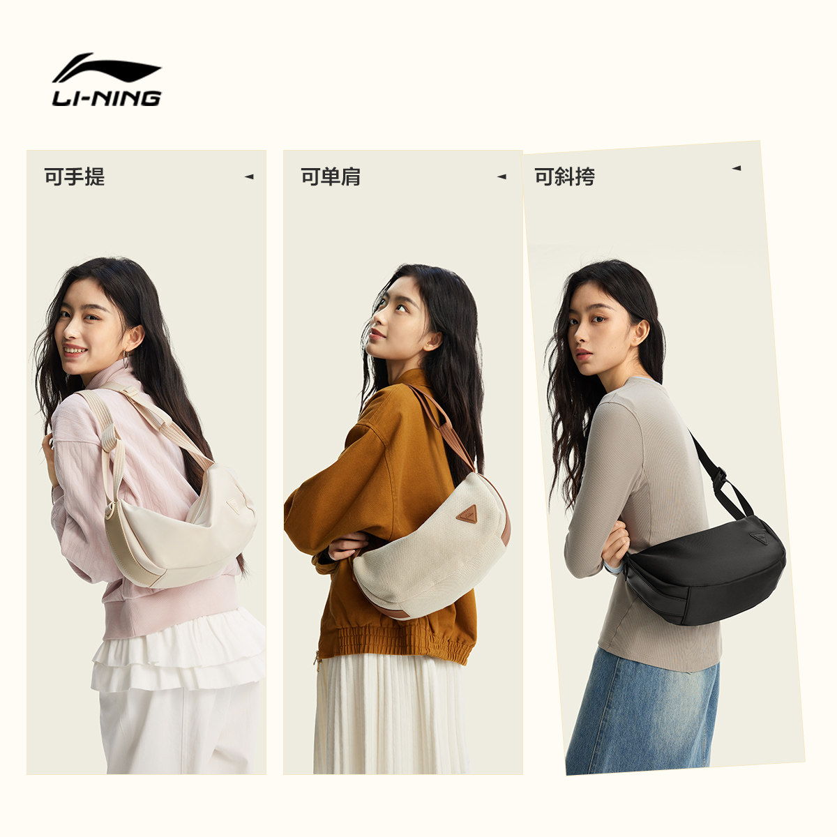 李宁斜挎包女包2026新款运动高级感轻奢小众通勤高颜值休闲月牙包