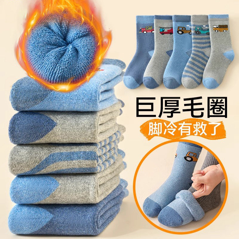 儿童袜子男童秋冬季保暖宝宝中筒袜小男孩加厚保暖女童袜毛圈长袜