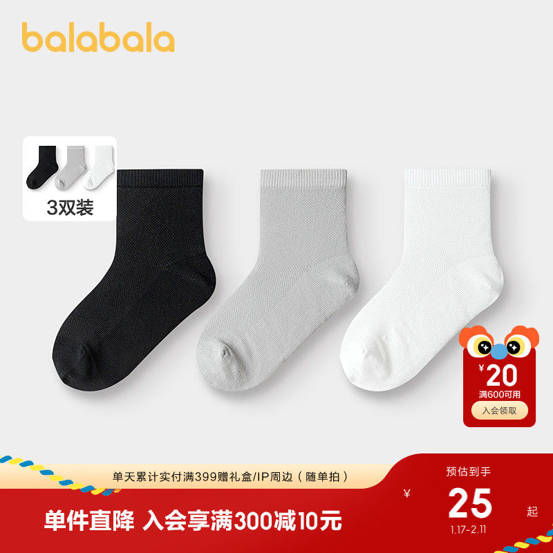 巴拉巴拉儿童袜子夏季网眼儿童短袜男女童弹力三双装