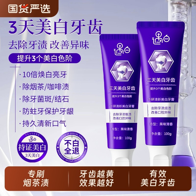 热销专研遇白去渍美白牙膏去黄去烟渍去口臭清新口气速效亮白无氟