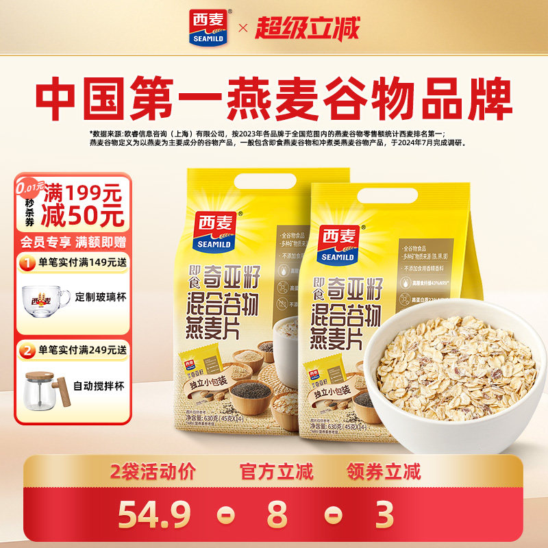 西麦奇亚籽混合燕麦片630g独立小包装高蛋白质营养0添加蔗糖早餐