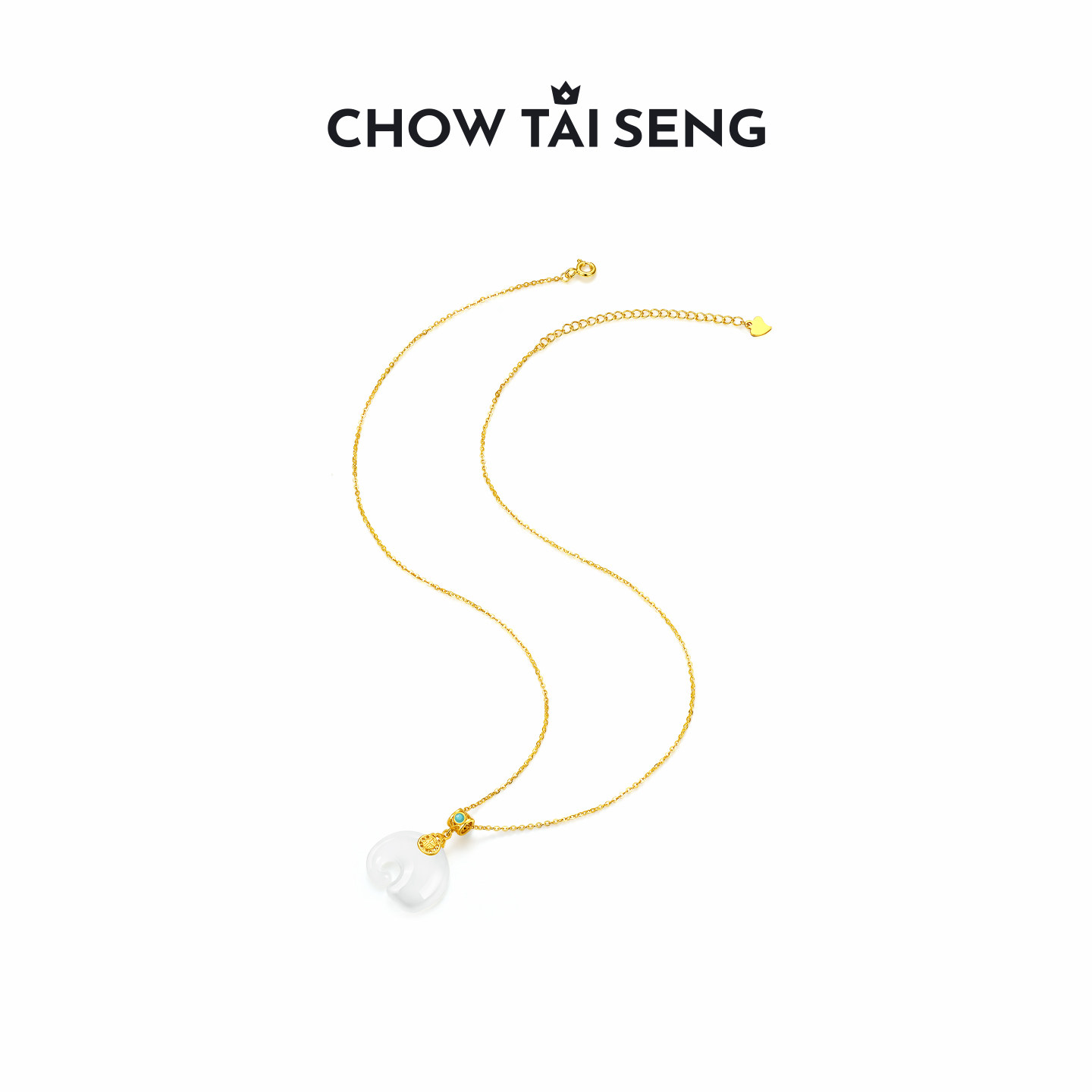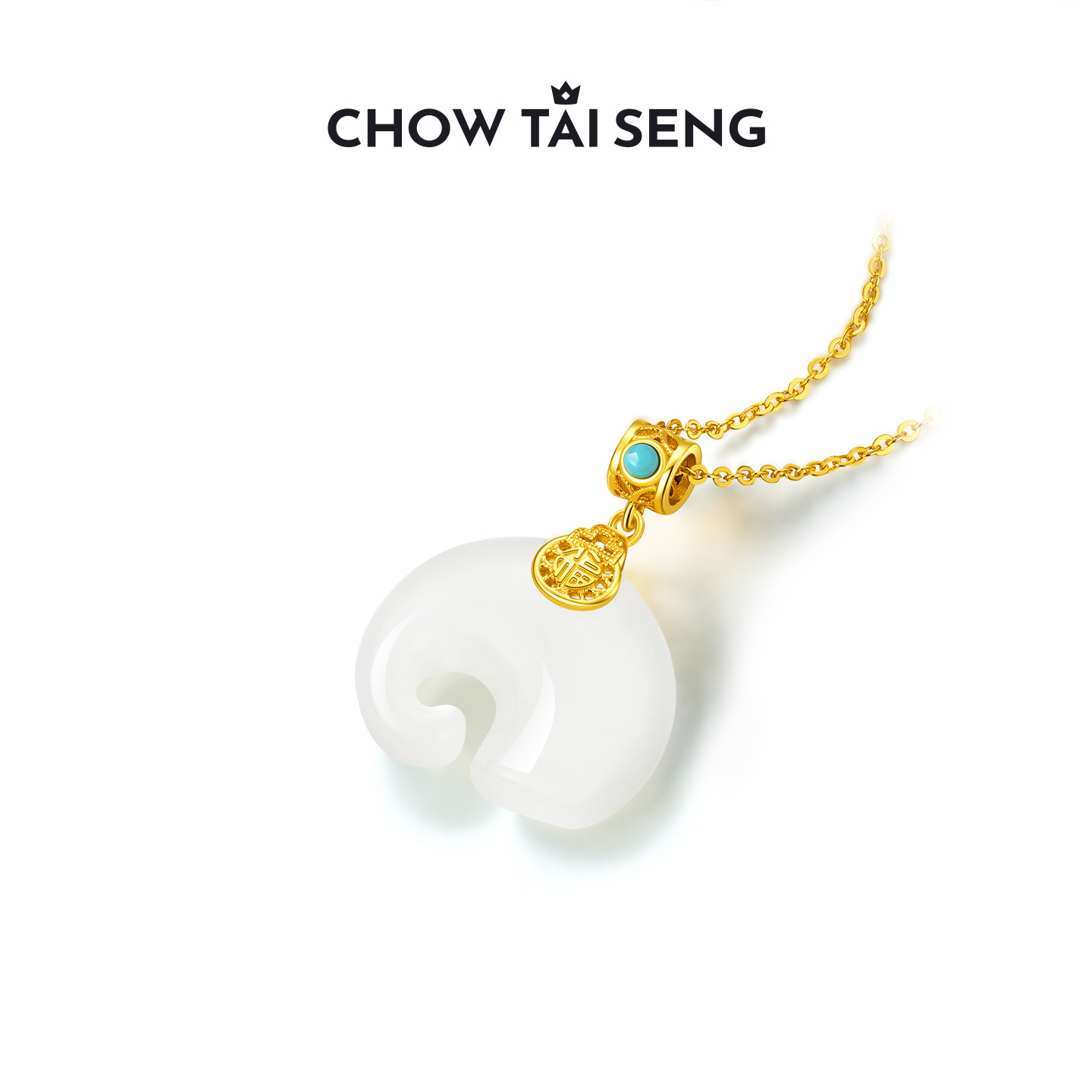 周大生万事吉象项链女S925银和田玉吊坠轻奢本命年礼物送妈妈