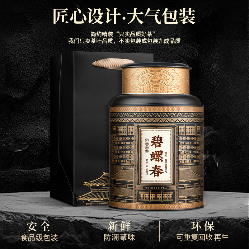 碧螺春绿茶新茶明前春茶浓香耐泡茶叶罐装花果香茶叶礼盒装500g