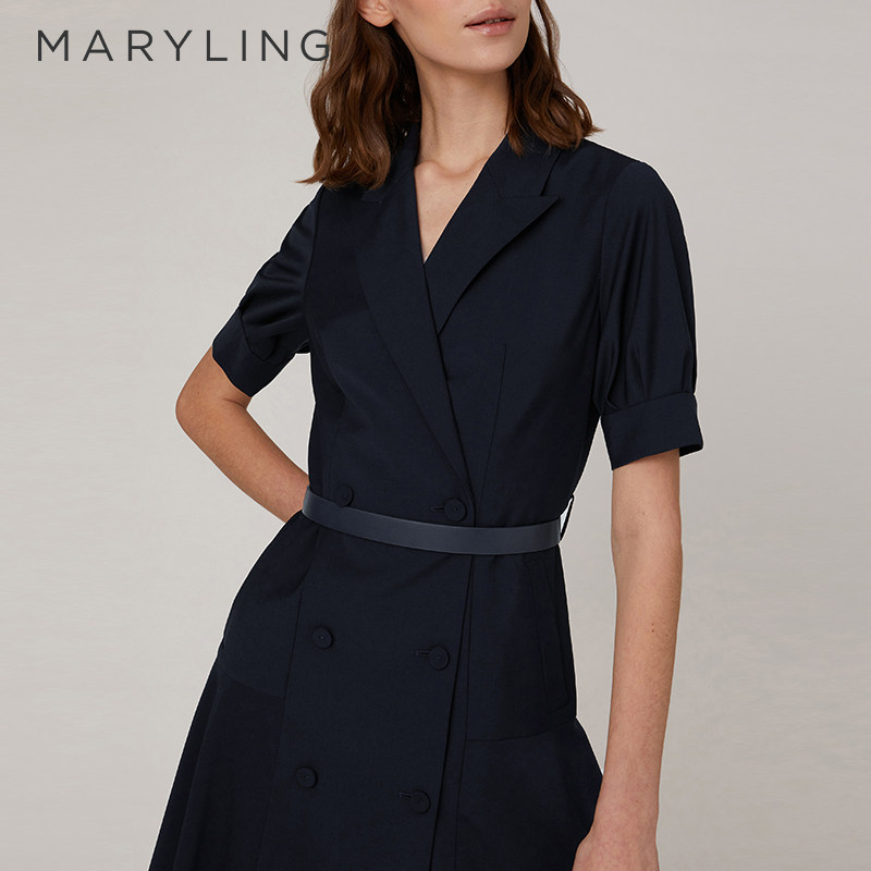 MARYLING玛俪琳夏季深蓝西装领泡泡袖短款连衣裙A1CCW62760