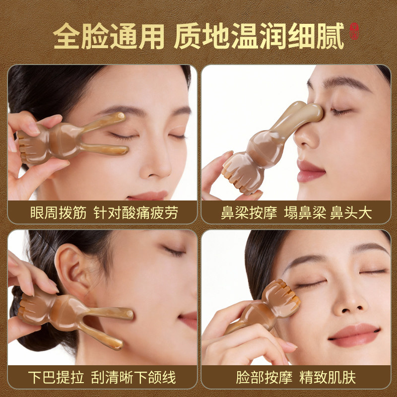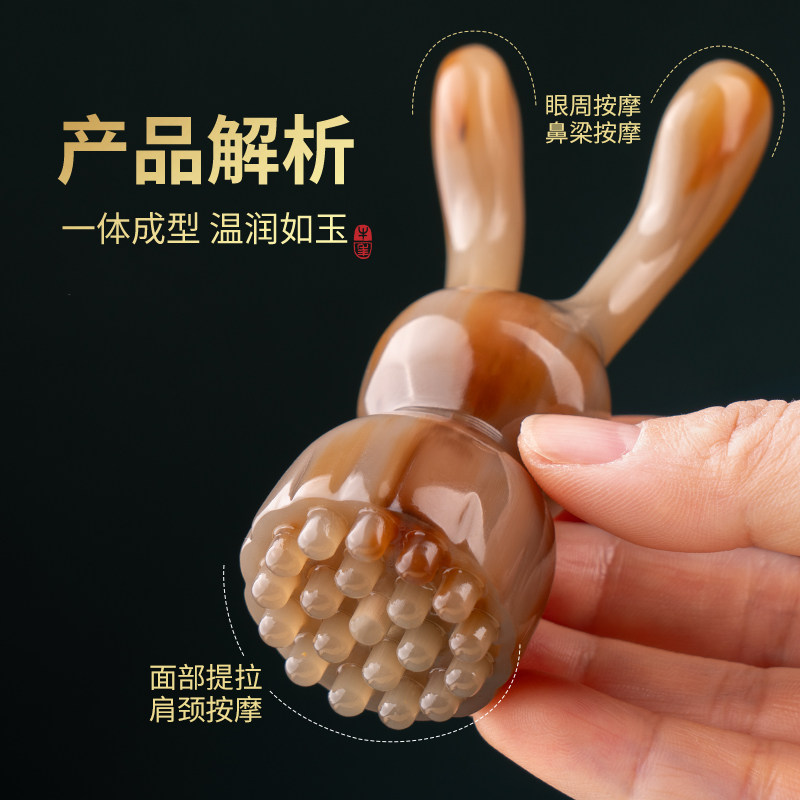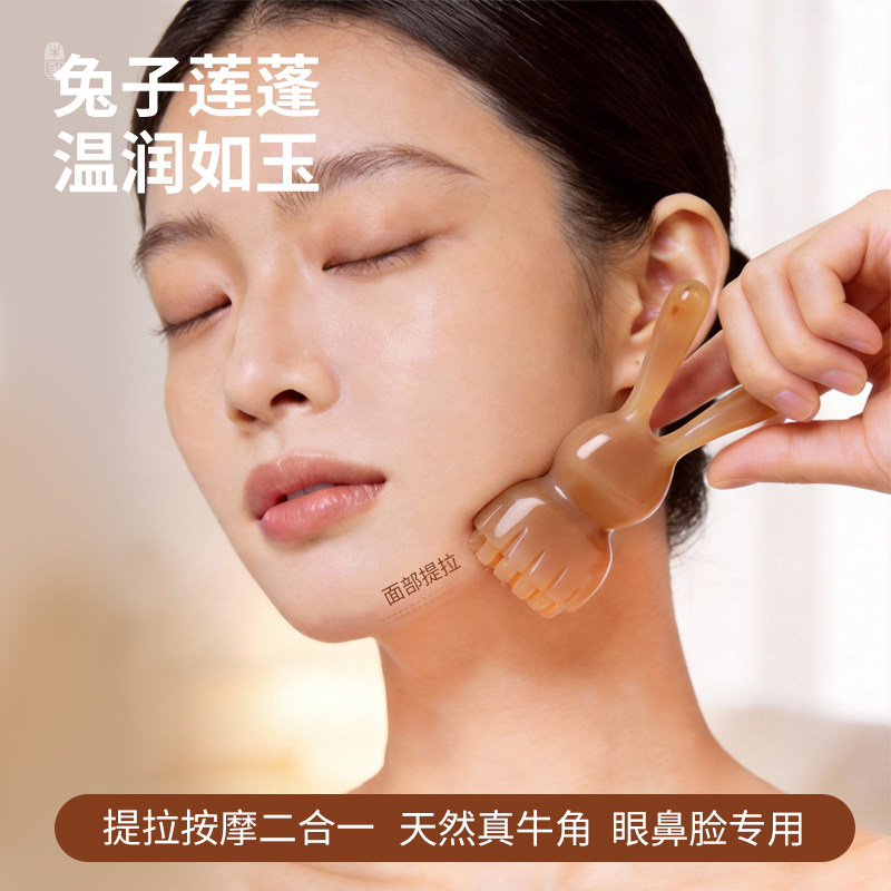 白水牛角兔子莲蓬拨筋棒面部按摩美容刮痧板脸眼鼻经络器搓耳正宗