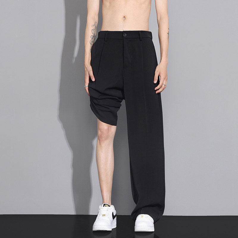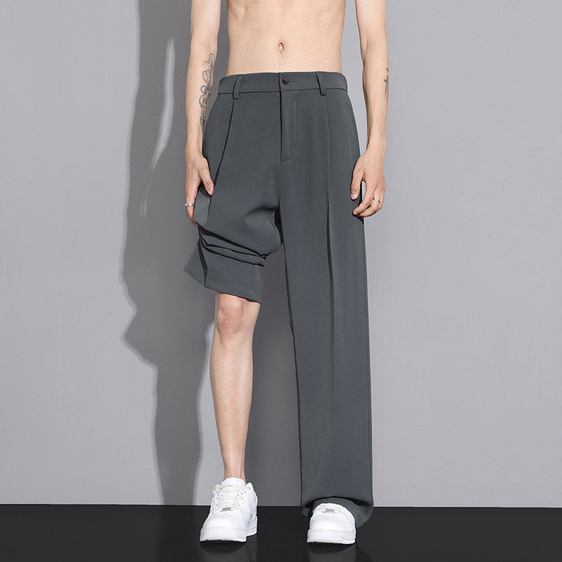 冰丝西裤男士夏季2026新款阔腿直筒宽松休闲长裤垂感西装裤子速干