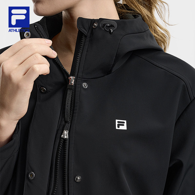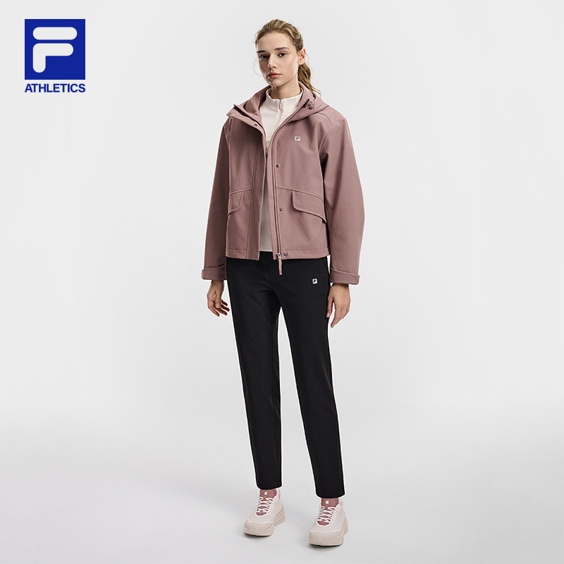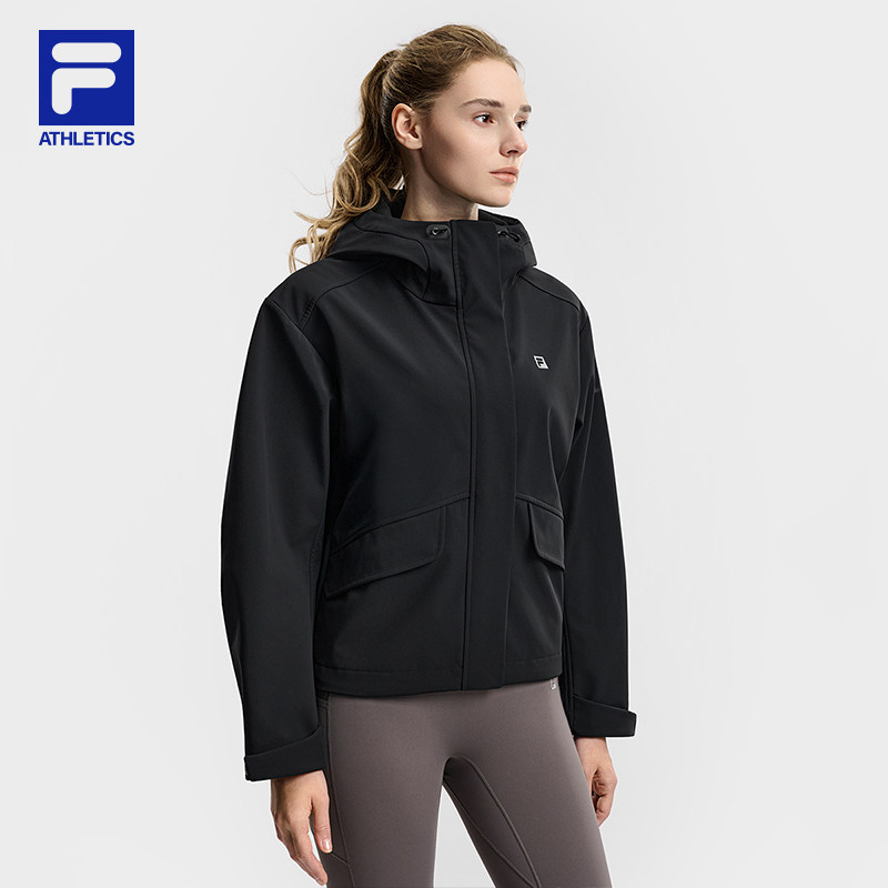 FILA 斐乐官方女梭织外套26春新款健身运动跑步宽松加绒连帽上衣