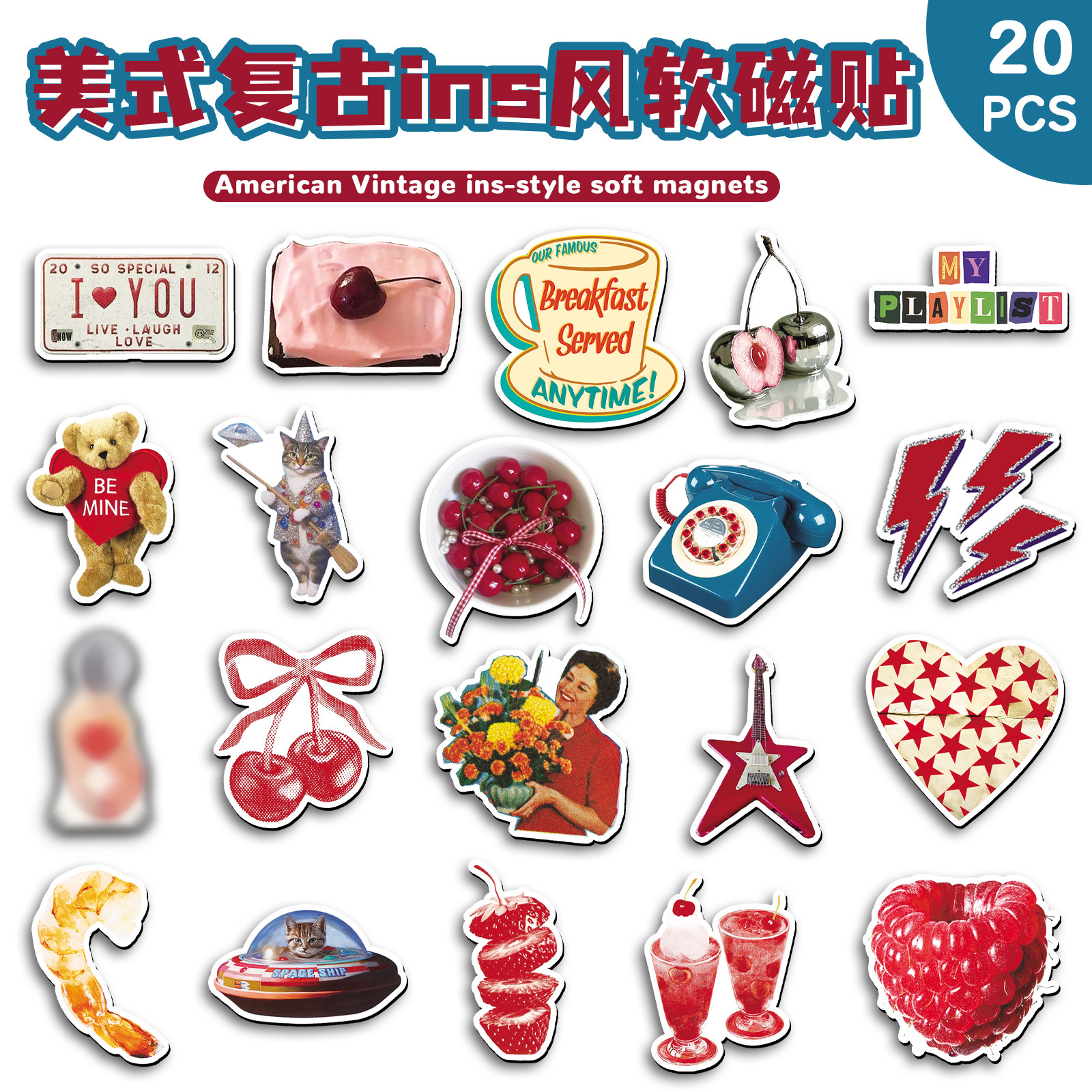 40张美式复古ins风软磁冰箱贴欧美潮流炫酷个性创意diy家居装饰防盗门留言板汽车黑板柜子入户门吸铁石磁力贴