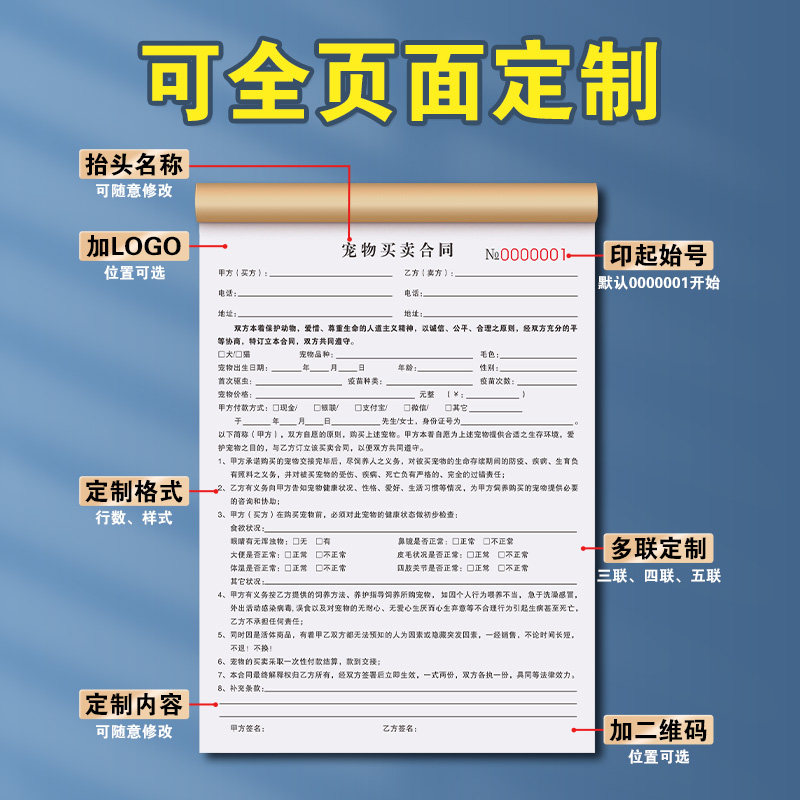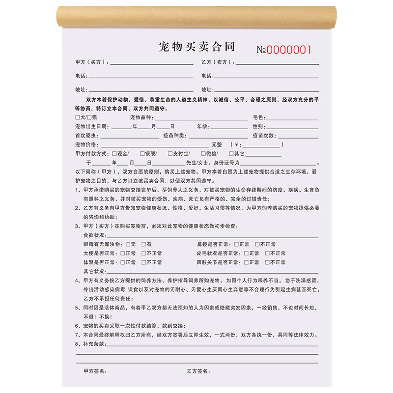 宠物店寄养协议书活体买卖合同单购买领养单据洗澡美容接待登记表