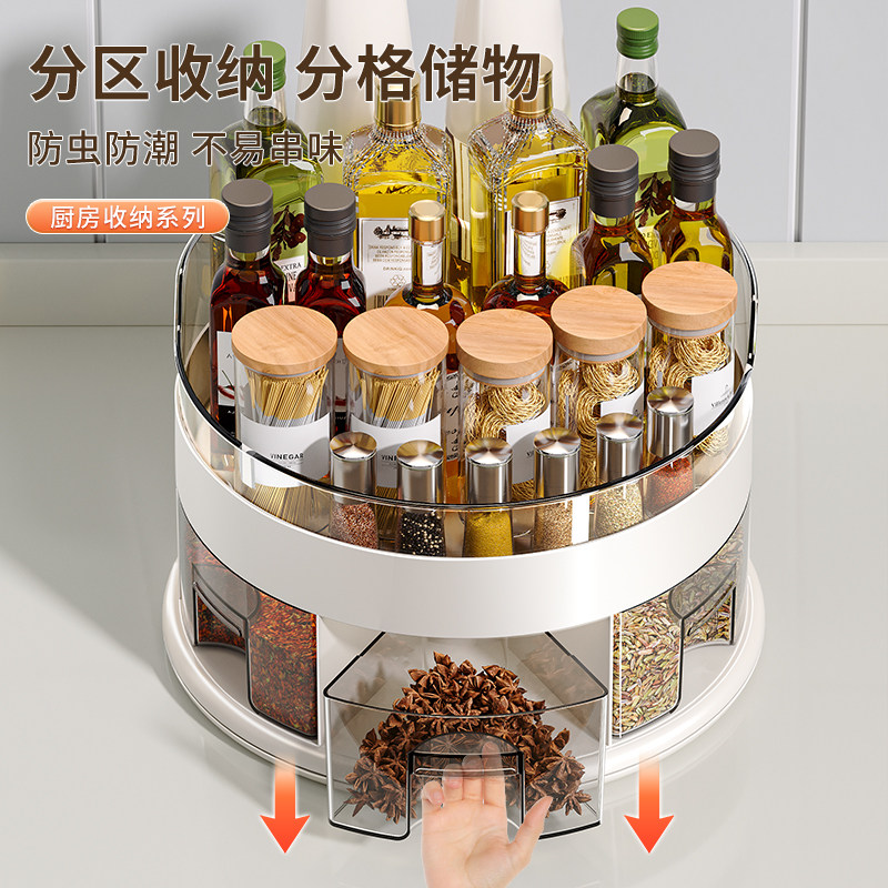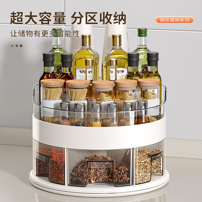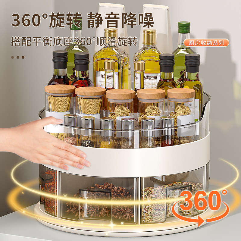 调料置物架收纳盒旋转托盘厨房多功能油盐酱醋调味料家用多格台面