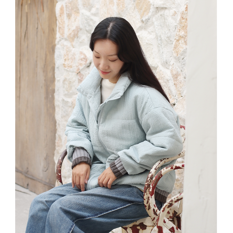 立领紧密贴合颈部线条,有效阻挡寒风入侵