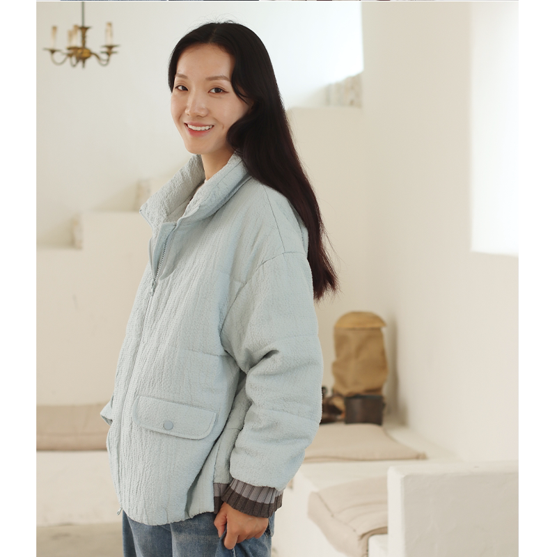 无色无味新款冬季保暖棉袄女款棉麻编织上衣高领厚外套亚麻棉服女