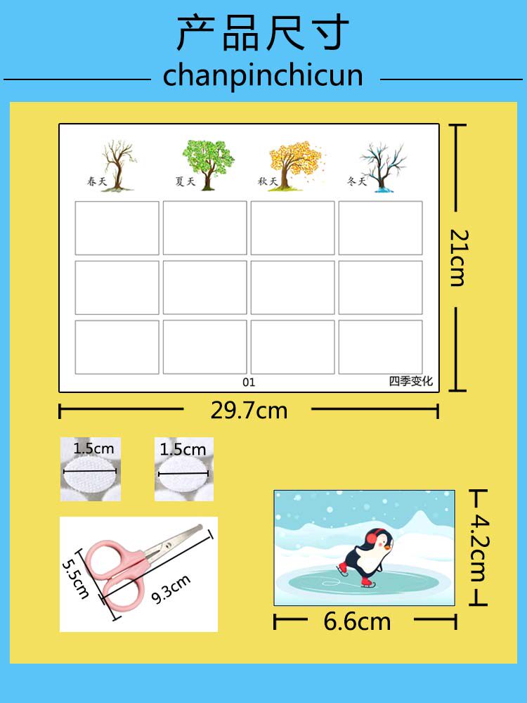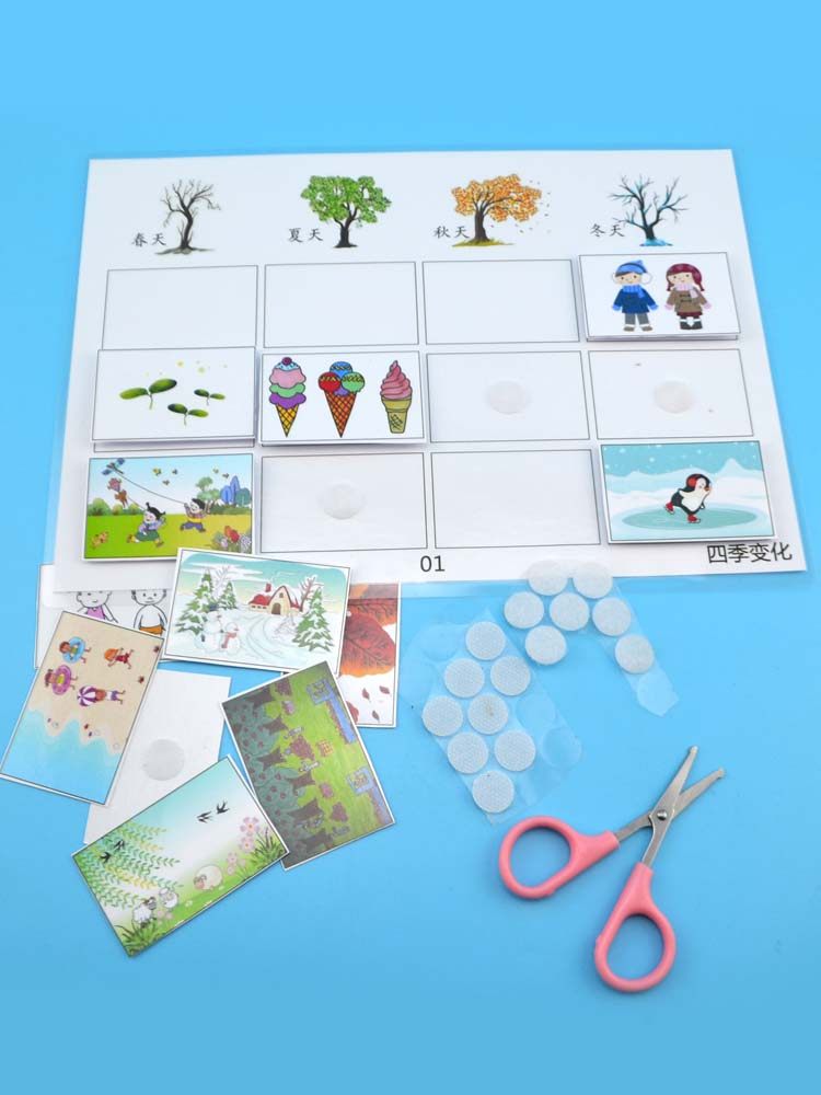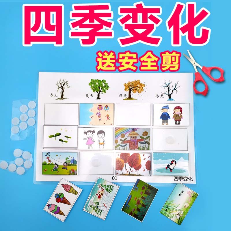 幼儿园儿童认知认识四季变化规律Diy早教益智手工粘贴材料玩教具
