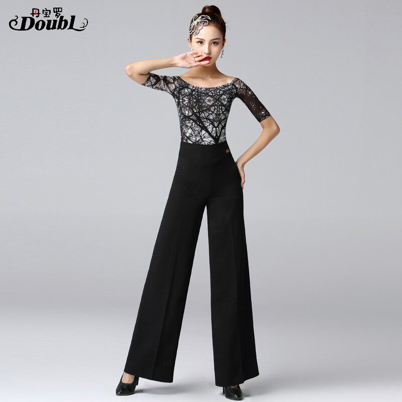 丹宝罗新款拉丁舞裤女跳舞裤子成人摩登舞裤黑色跳交谊舞的舞蹈裤