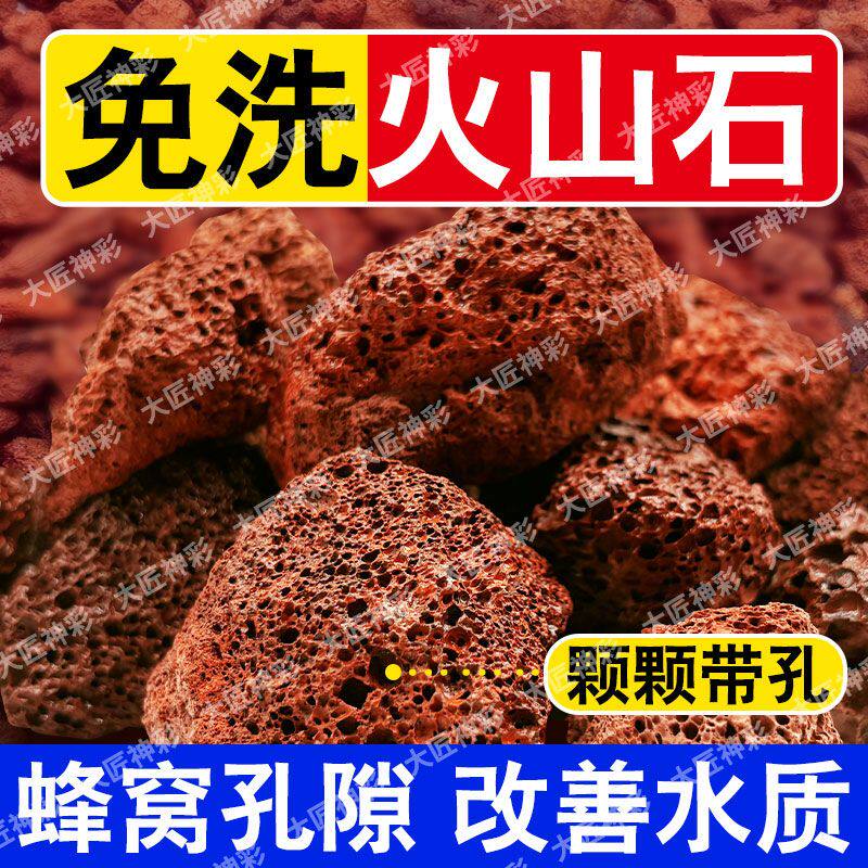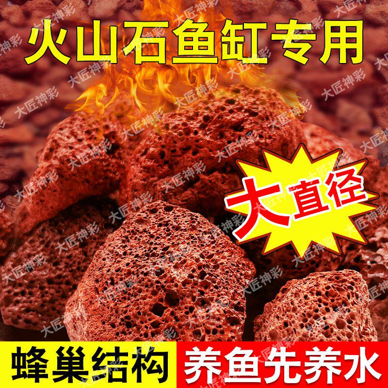 天然红色火山石水族过滤材料鹦鹉罗汉鱼缸铺底净水造景大块火山岩