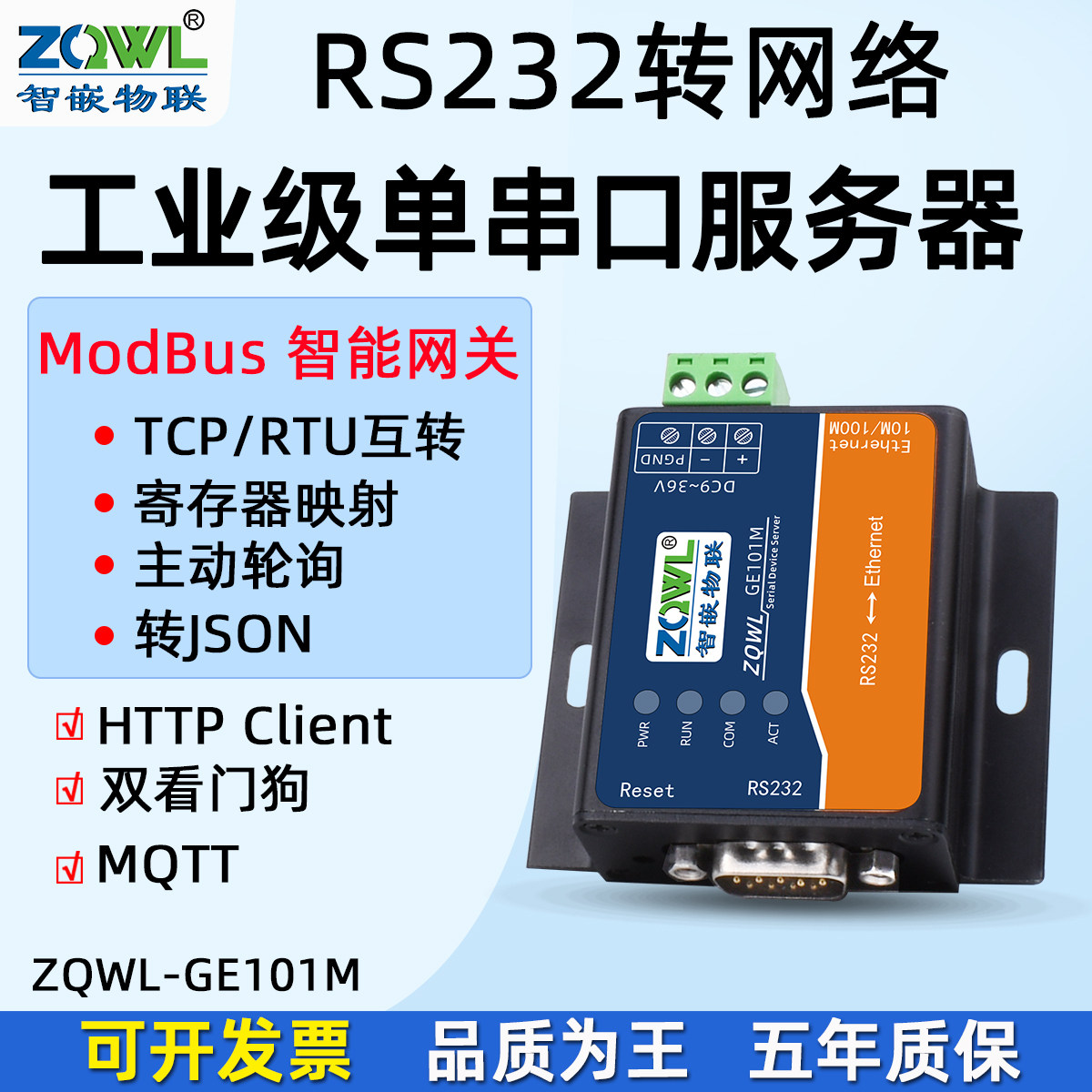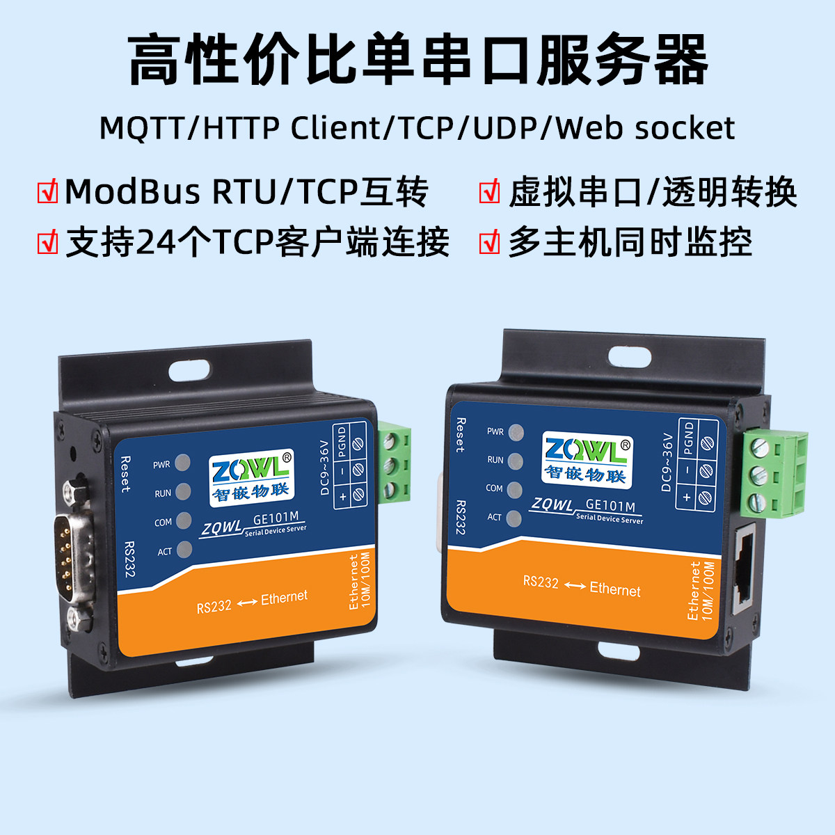 【智嵌物联】串口服务器1路RS232转以太网模块232转网口Modbus网关RTU转TCP/JSON通讯模块