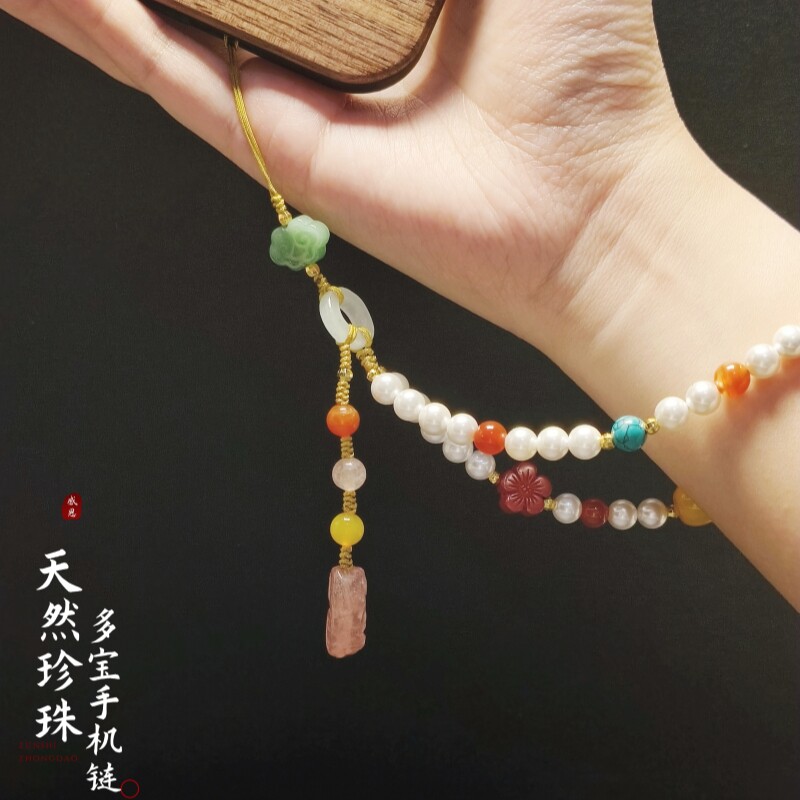 天然珍珠手机链挂绳手腕款多宝财源貔貅男女款手机挂件挂饰链礼物