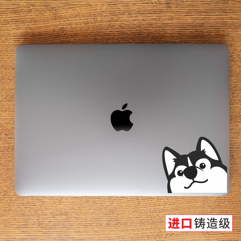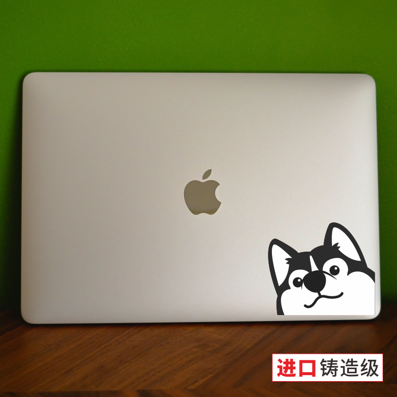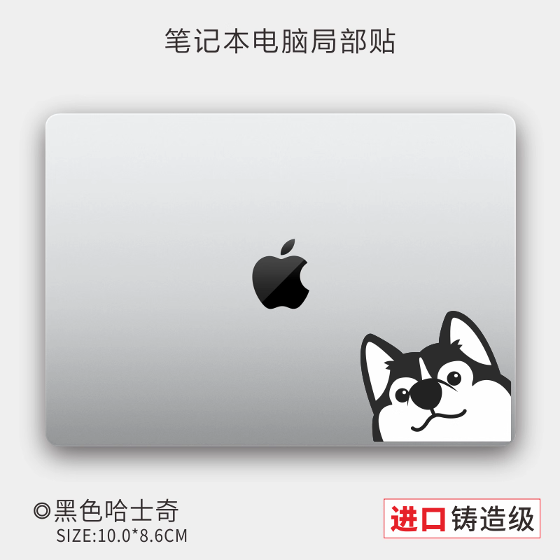 艺贴进口铸造级带导气槽易定位技术 黑色哈士奇二哈 笔记本电脑平板局部装饰贴纸挡划痕遮瑕贴画个性创意无痕
