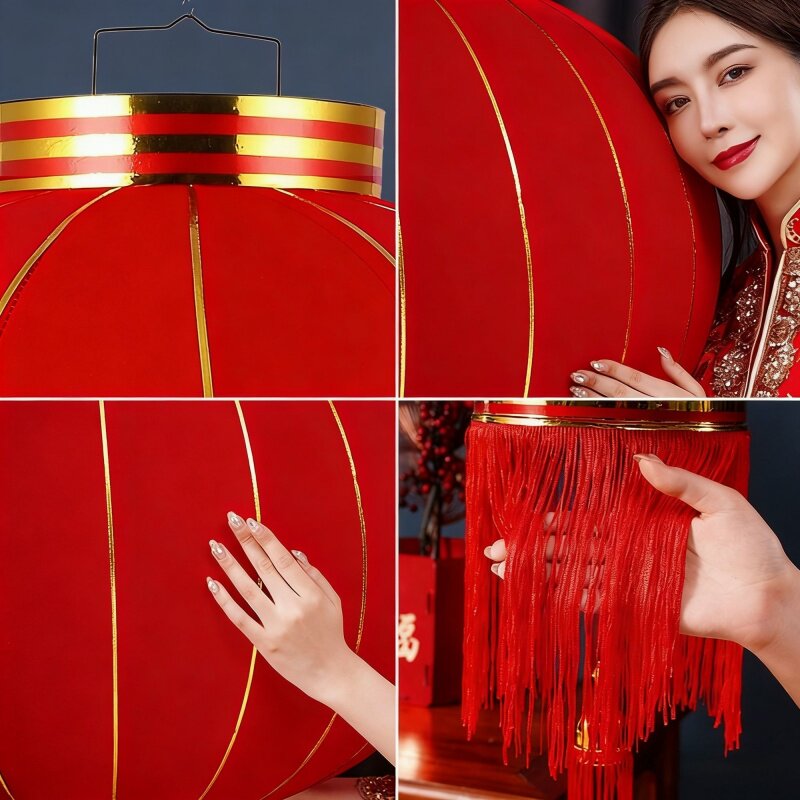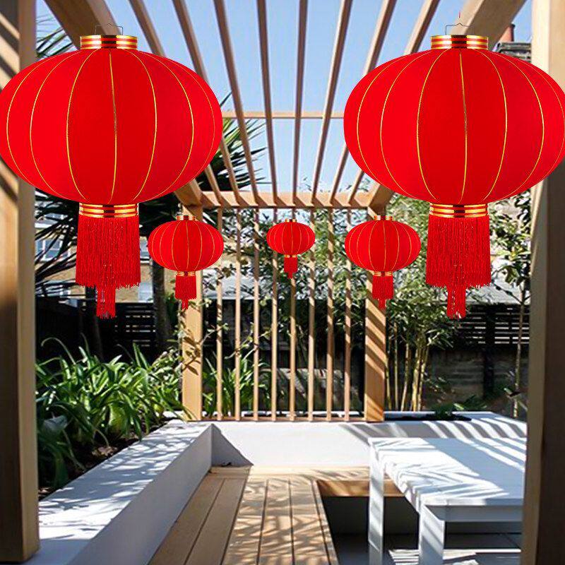 新年植绒小灯笼2026户外庭院子红宫灯春节过年装饰品年味场景布置