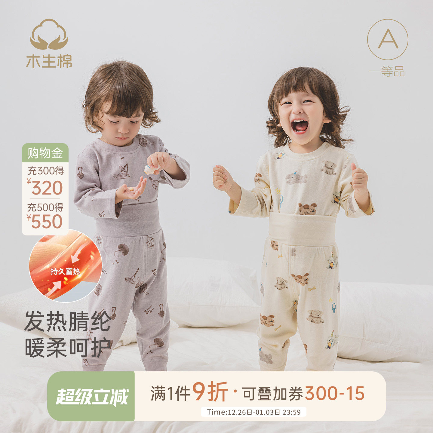 木生棉男女宝宝高腰护肚长裤春秋冬婴儿保暖蓄热大pp无骨居家睡裤