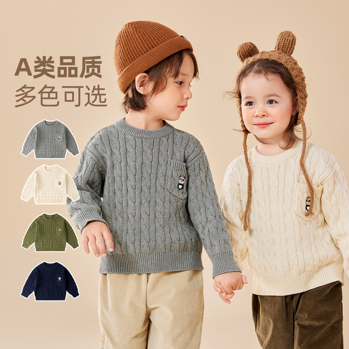[李佳琦推荐][抗静电起球]齐齐熊男童毛衣加厚冬款条纹半高领宝宝