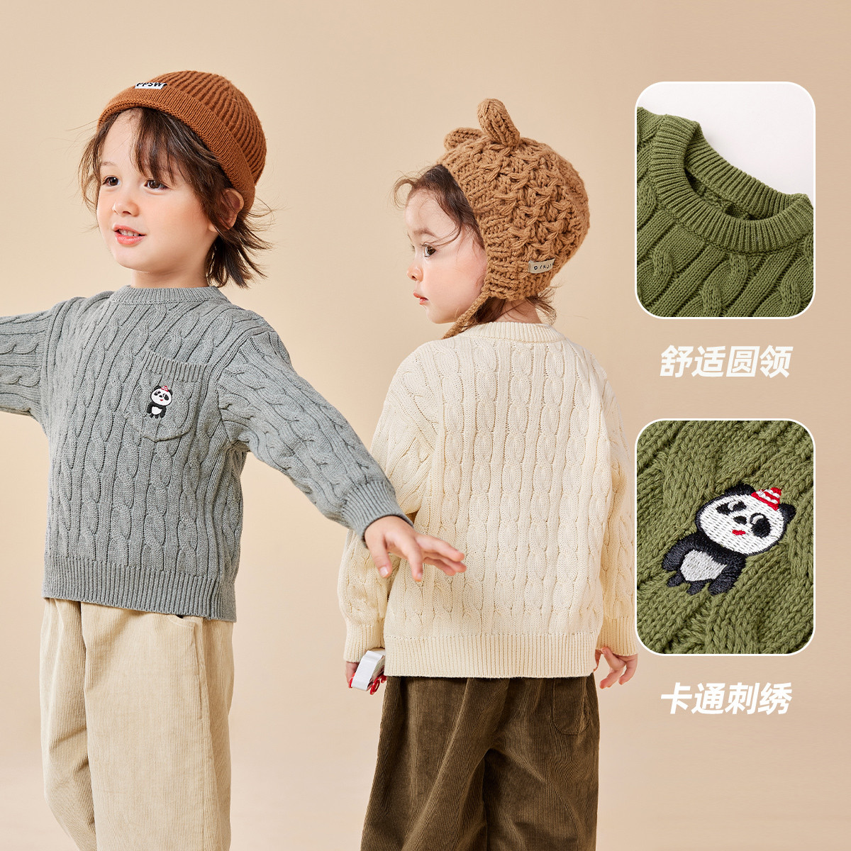 [骏马福裳]齐齐熊男童毛衣开衫冬装新年红色加厚宝宝毛线外套上衣