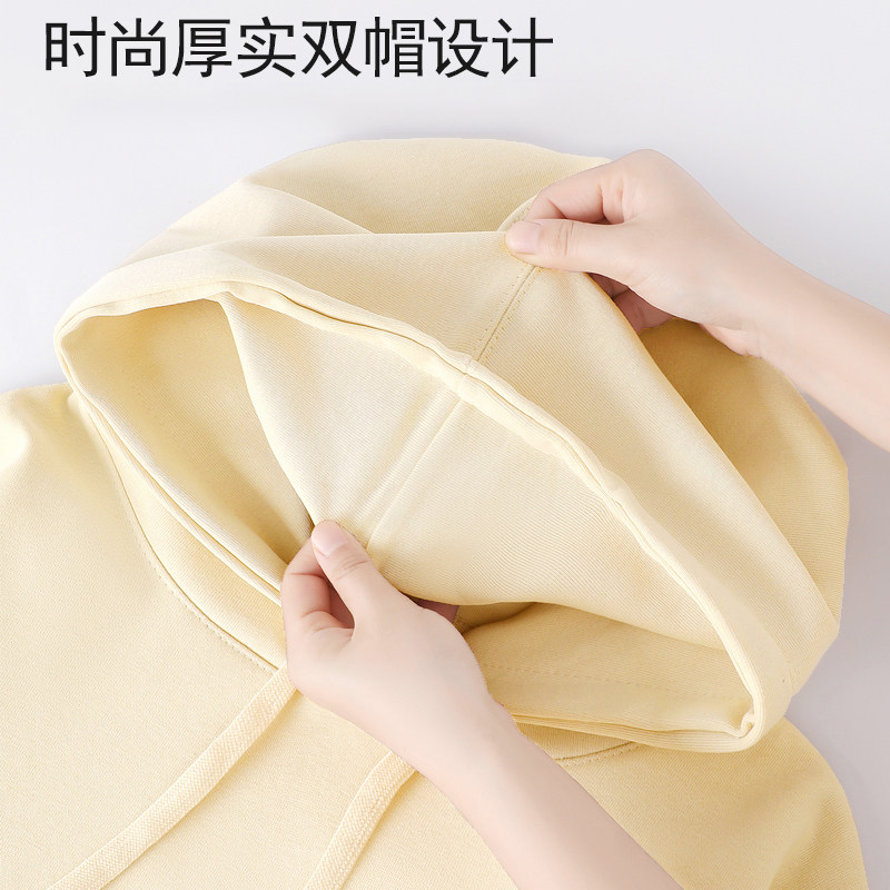 NEVERNEED重磅字母印花短款加绒连帽卫衣男女秋冬季美式套头上衣