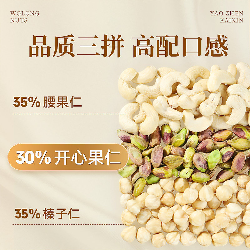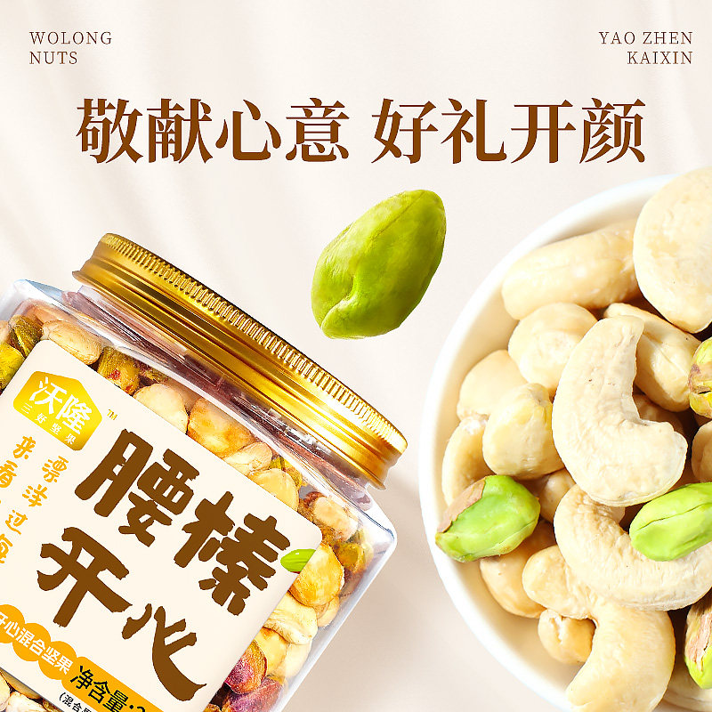 沃隆腰榛开心268g腰果榛子开心果混合坚果零食大礼包炒货盐焗果仁