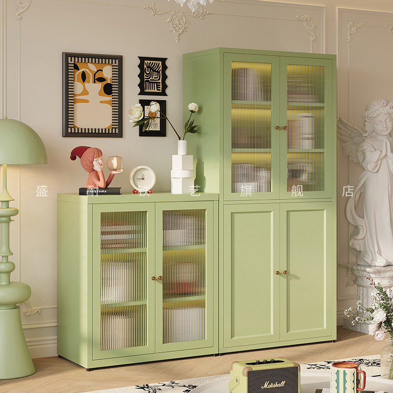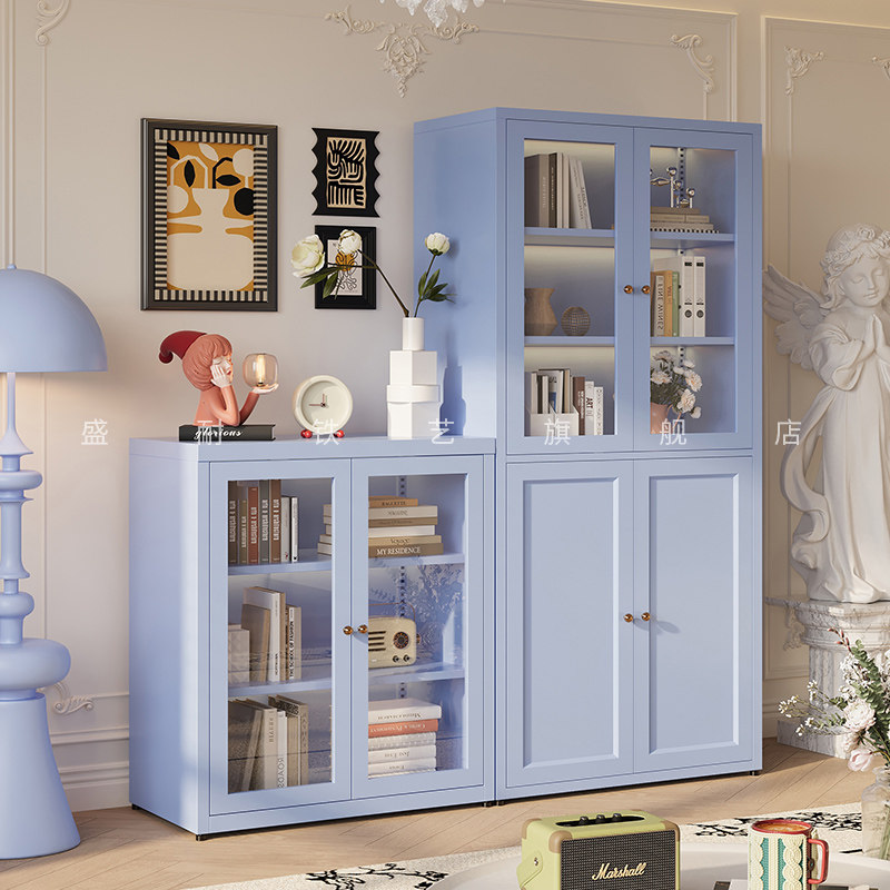 钢制书柜带玻璃门落地家用组合客厅防尘置物柜儿童书架柜子展示柜