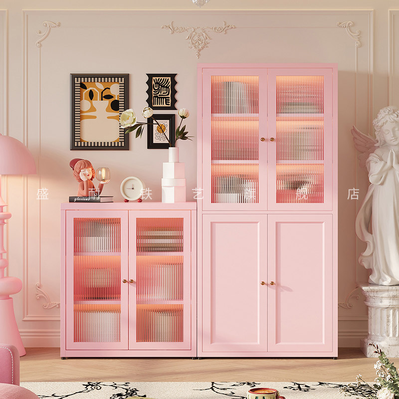 钢制书柜儿童书架落地家用客厅亚克力透明防尘门展示柜储物置物架