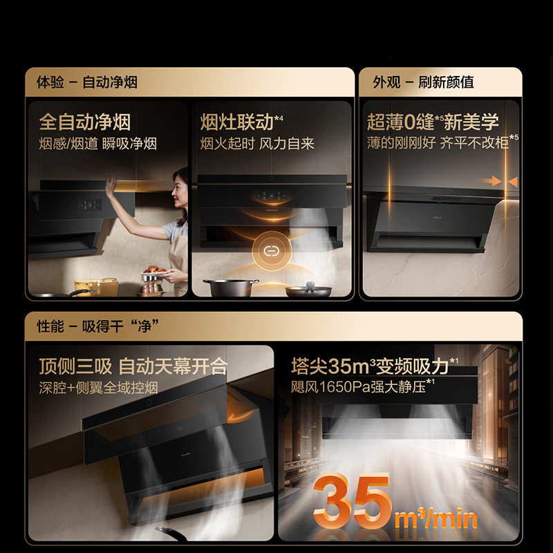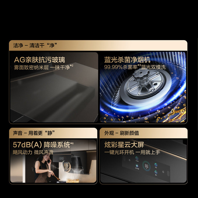 [品牌补贴]万和蓝光净烟自动驾驶大吸力顶侧三吸抽油烟机V9LUltra