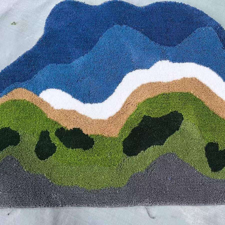 跨境ins风山水苔藓地毯卧室床边毯异形清新房间客厅浴室防滑植绒