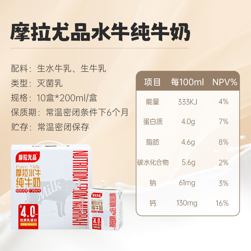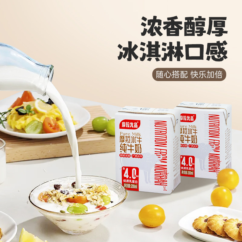 摩拉尤品4.0g蛋白水牛纯牛奶200ml*20盒整箱儿童营养早餐水牛奶