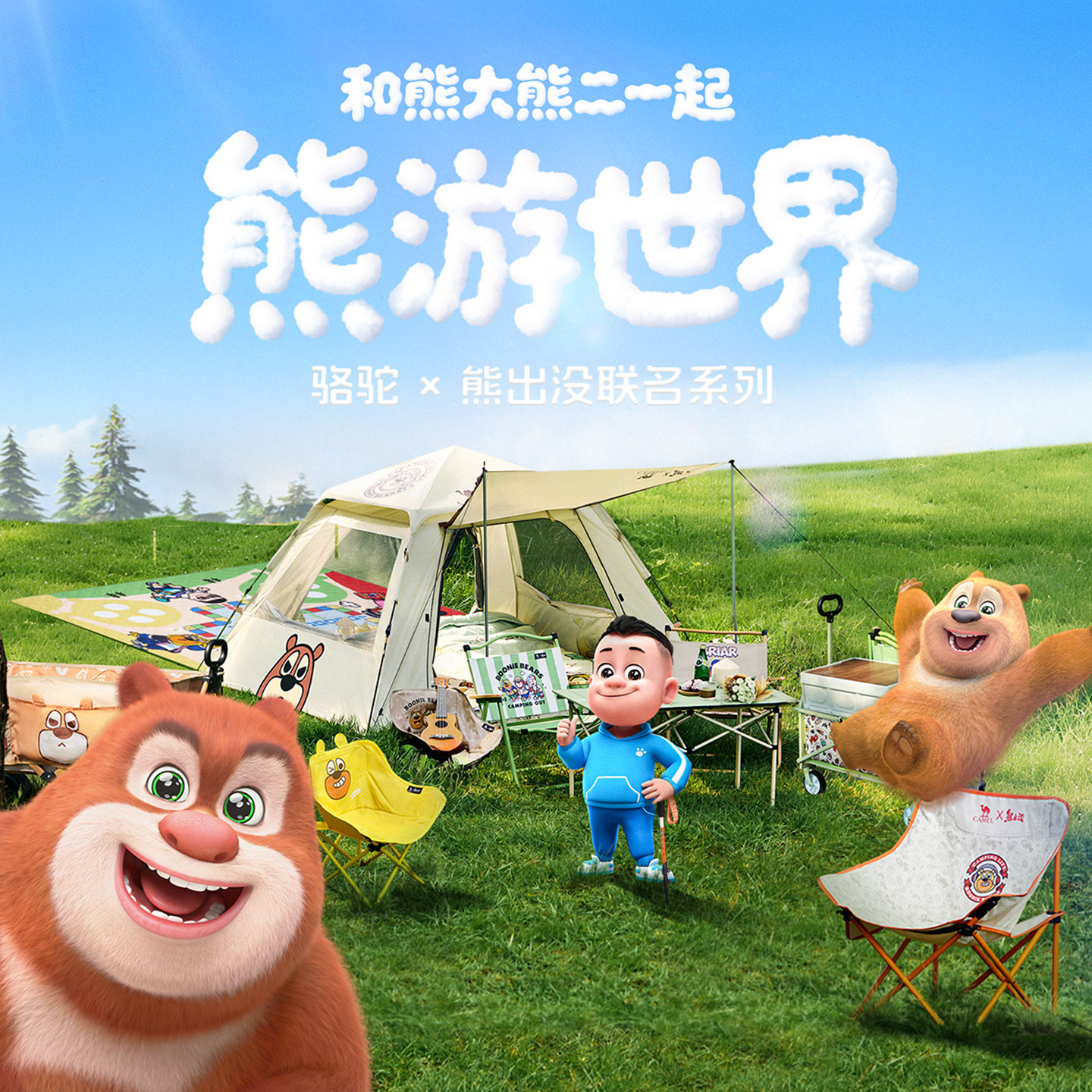 骆驼熊出没联名儿童登山杖拐棍专业户外爬山徒步防滑轻便伸缩手杖