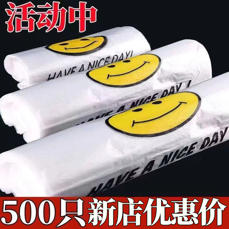 笑脸加厚透明塑料袋外卖垃圾袋商用打包袋购物袋方便手提袋子食品