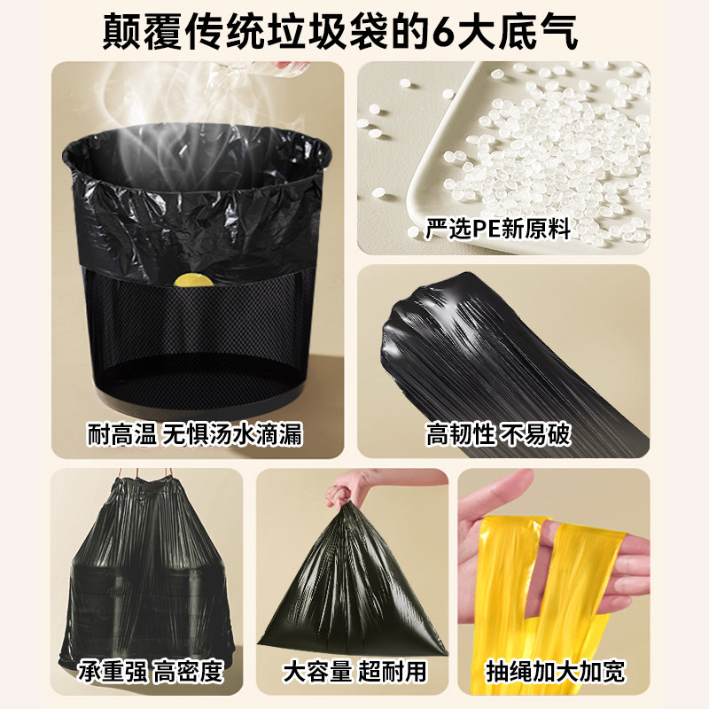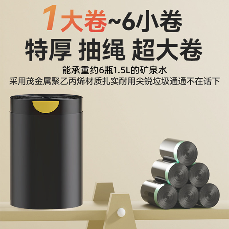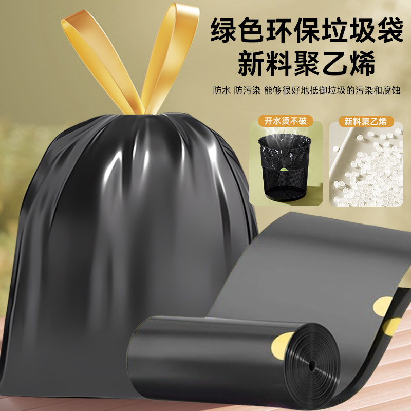 垃圾袋加厚免撕抽绳家用手提式厨房办公室黑色大号塑料袋实惠装