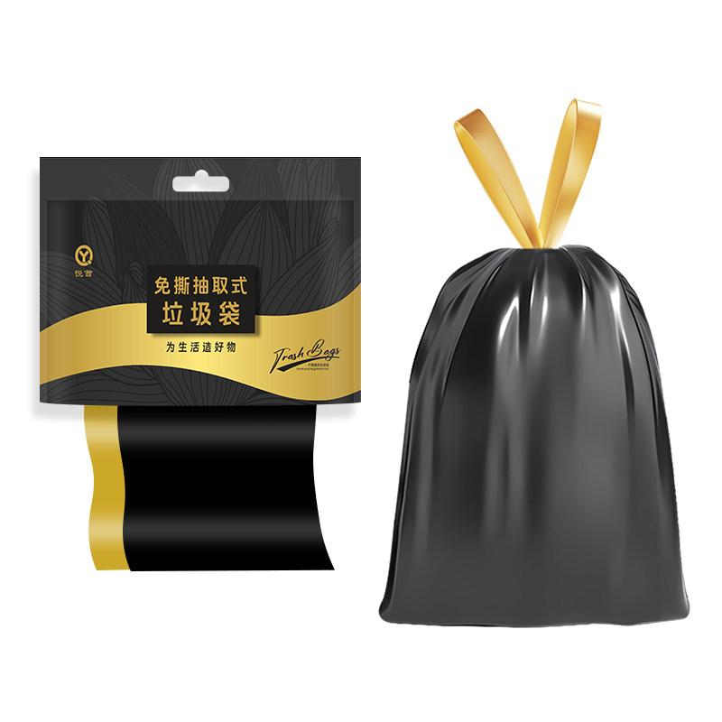 手提式抽绳垃圾袋家用加厚实惠批发装厨房黑色大号垃圾袋