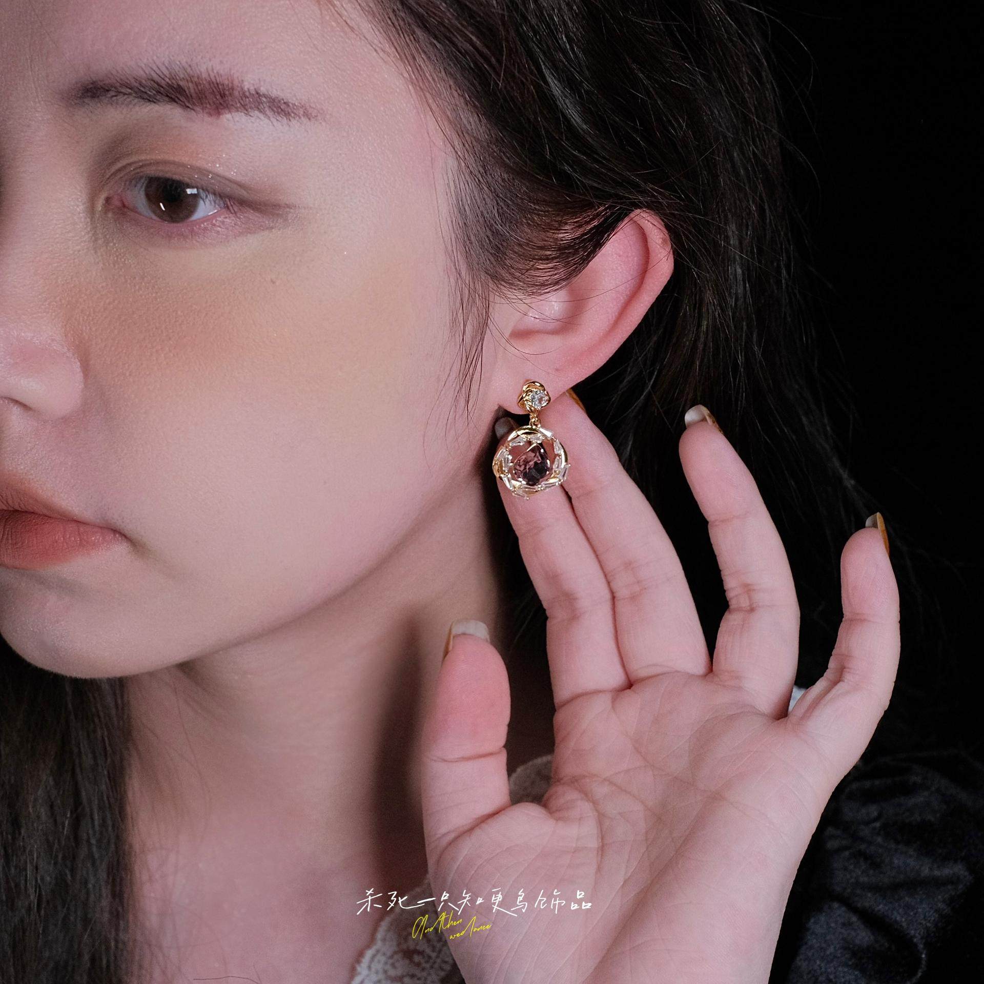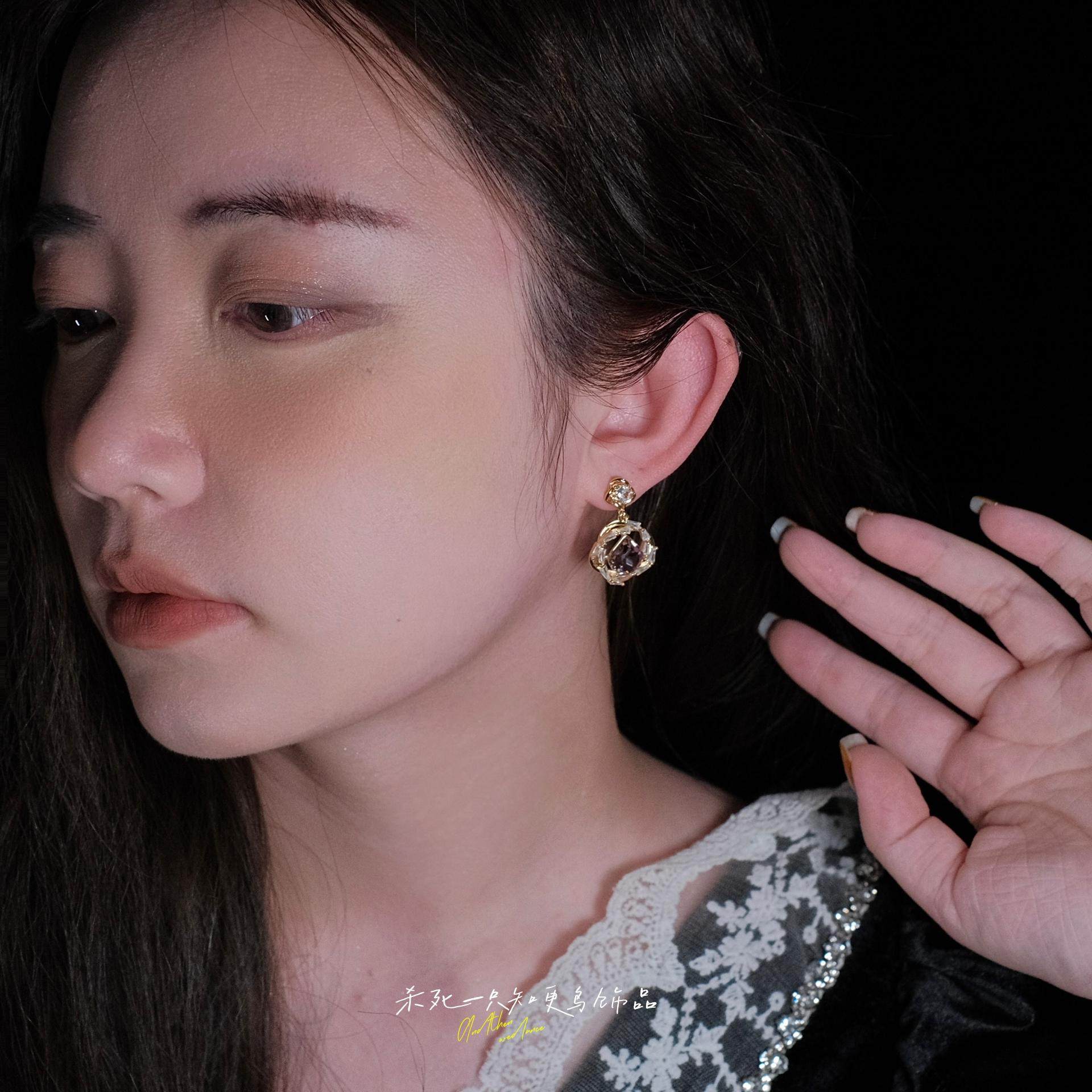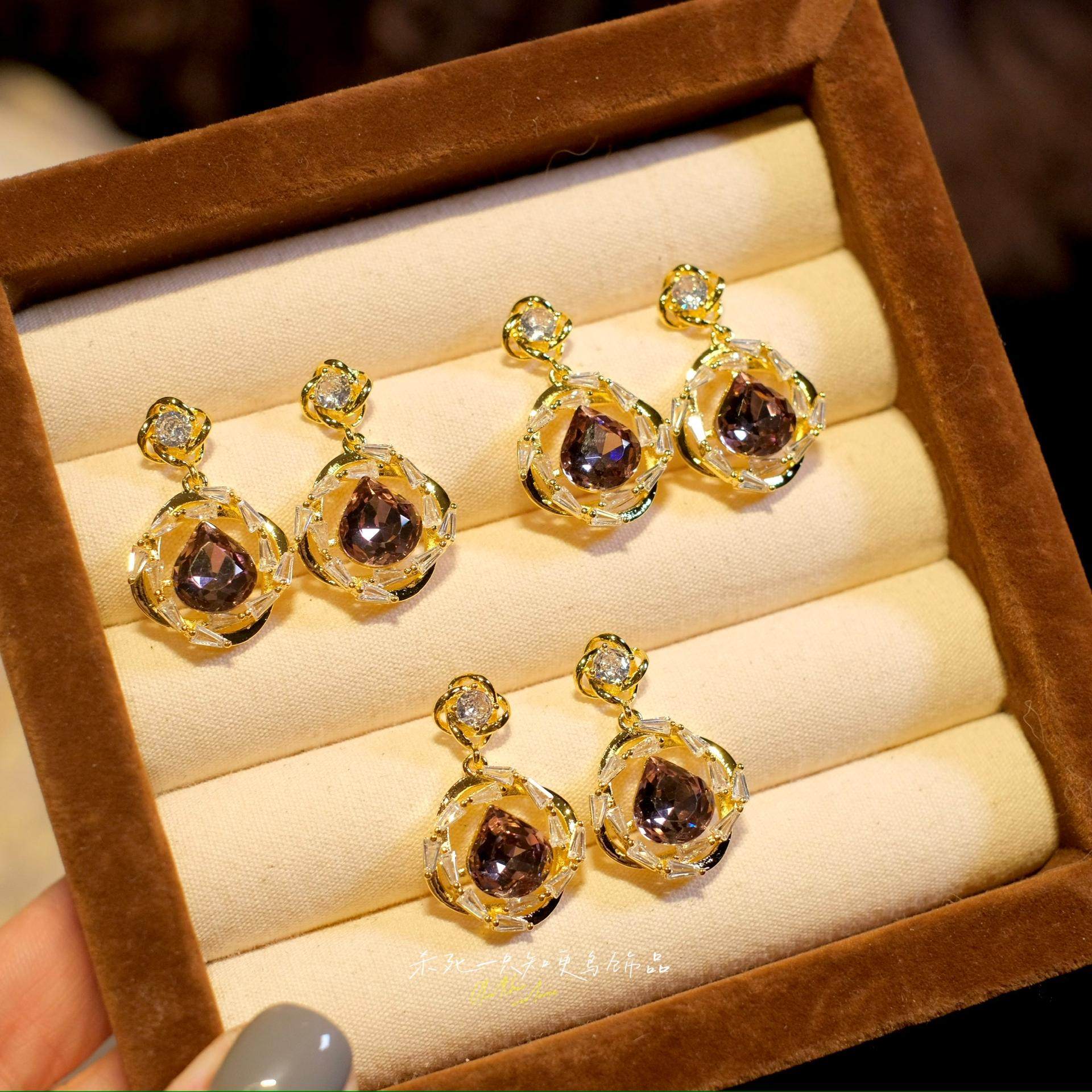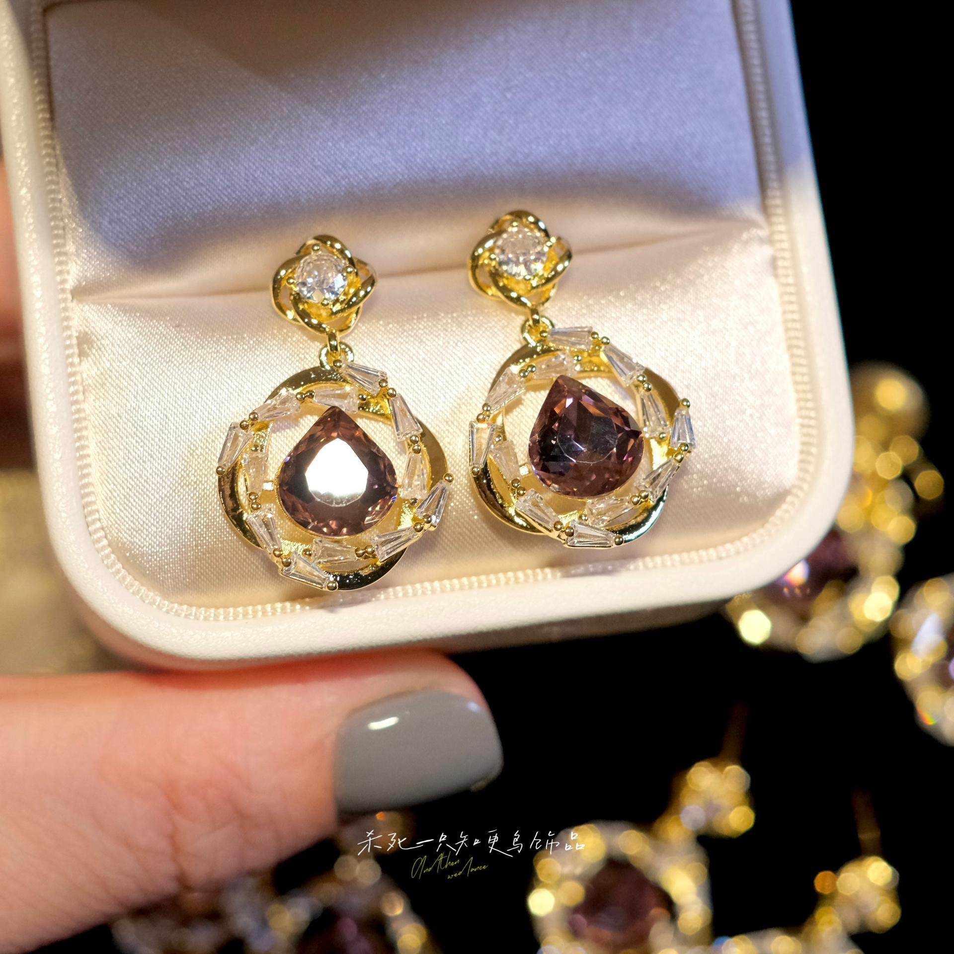 《丁香之梦》复古轻奢优雅高级感精致水滴紫色锆石满钻耳环耳夹女