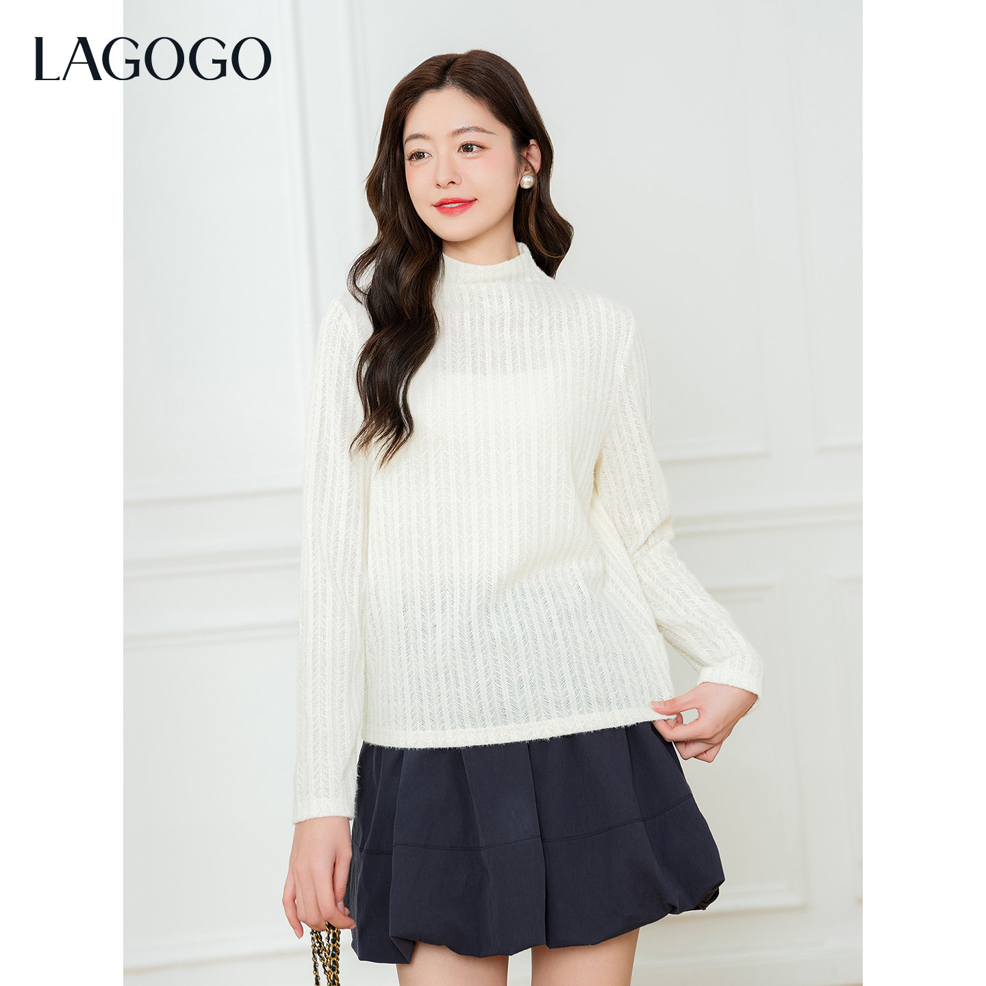 LAGOGO蕾丝白月光半高领小衫女拉谷谷2026年春新款打底衫内搭上衣