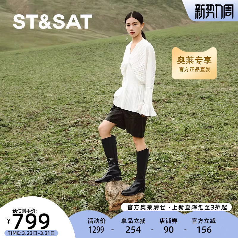 星期六时装长筒靴新款优雅简约潮流皮面增高女鞋SSC4117519