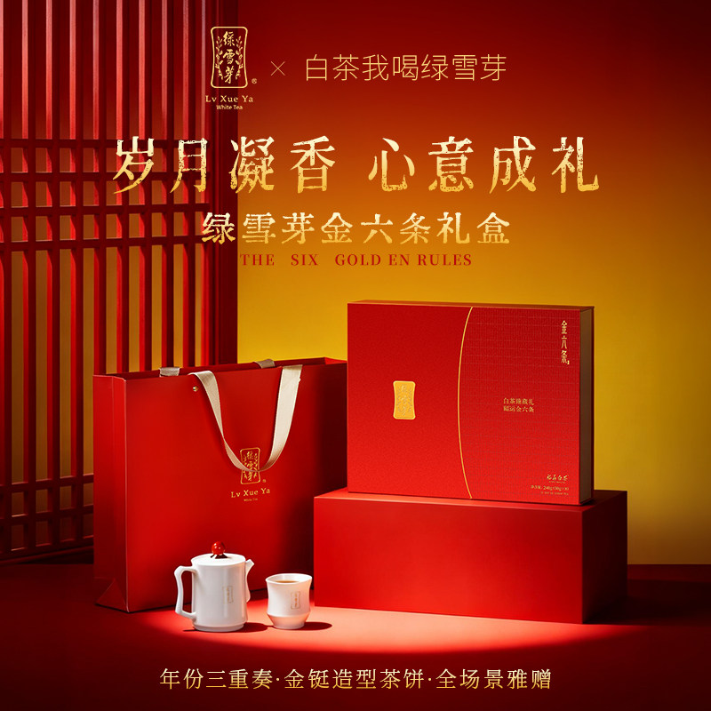 绿雪芽福鼎白茶寿眉金六条独立装小方片礼盒240g
